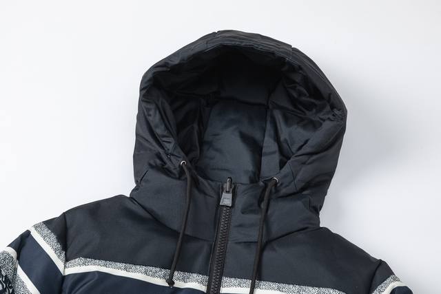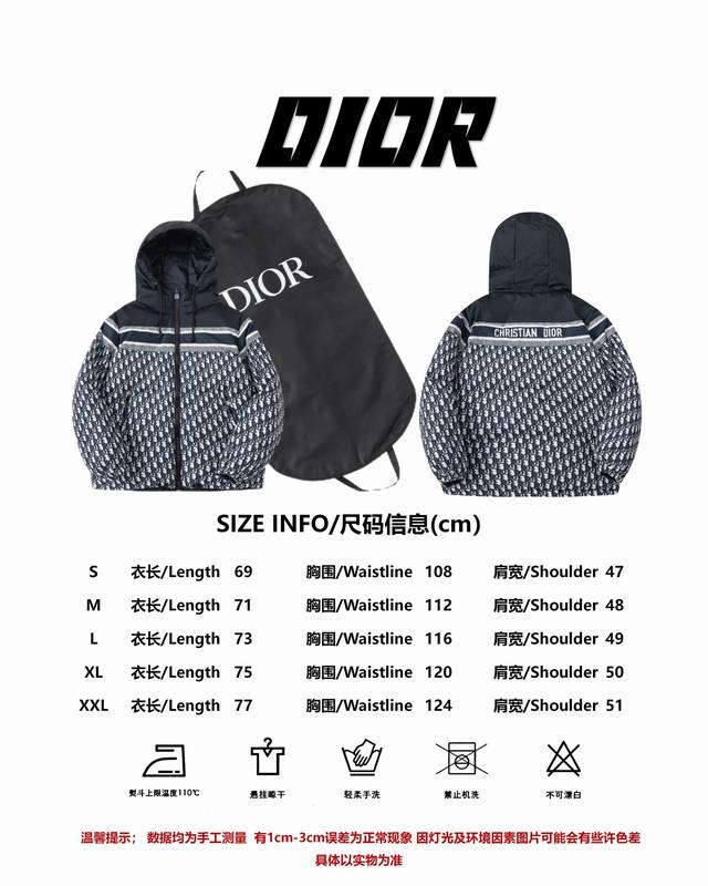 Style No. #S615 Dior Classic All-Over Print Reversible Hooded Down Jacket. Original sample purchased for 17,000 RMB for pattern making. Uses 90% white duck down meeting the new international standard, with a fill power of 700. Each jacket contains at least 330 grams of down, 100% pure down filling. To differentiate from small workshops' hand-filled down, we use McGs machines for filling, ensuring the amount of down filling for each piece, the loft of the down, and a 900-density double-layer down lining with an anti-down-shifting coating to maintain the down's shape and prevent shifting after dry cleaning. The inner lining is 900 density with an anti-fleece coating. Original Velcro closures are used on the cuffs and collar for durability. All accessories and hardware are custom-made from the original manufacturer. Details determine quality. Custom double-sided printed fabric, with the monogram logo perfectly aligned to the original design, taking 60 days to complete. Super soft to the touch, exquisite floral design with computer-aligned positioning. The fabric is soft and anti-static. Compare directly to other versions on the market. Color: As pictured. Sizes: S-XL.