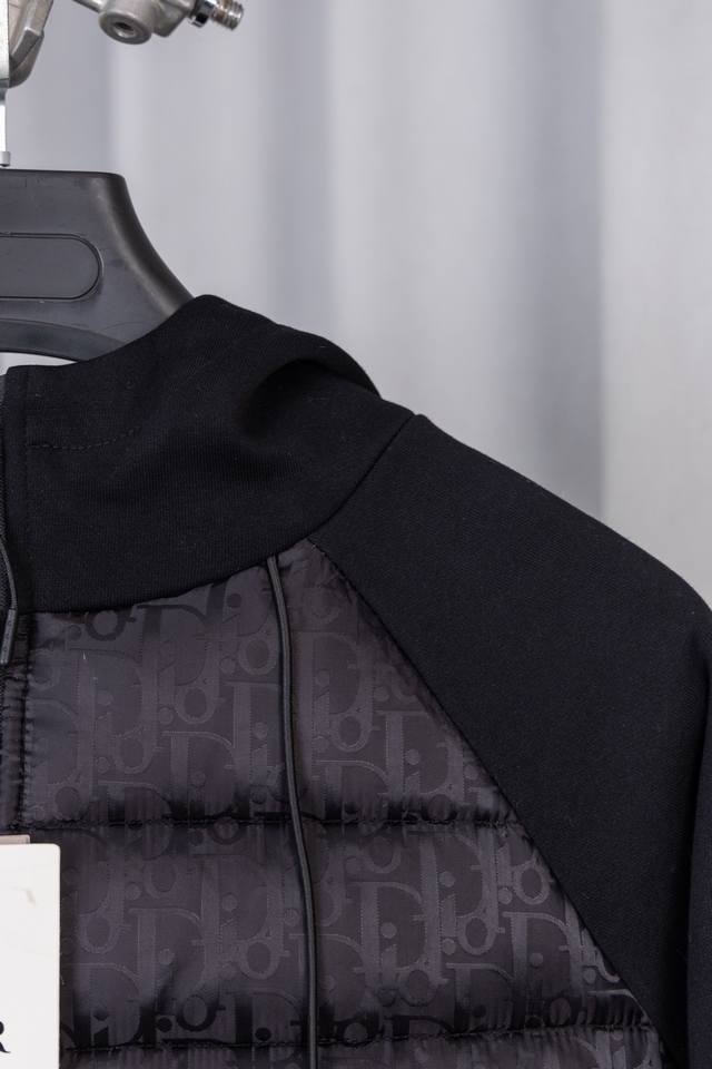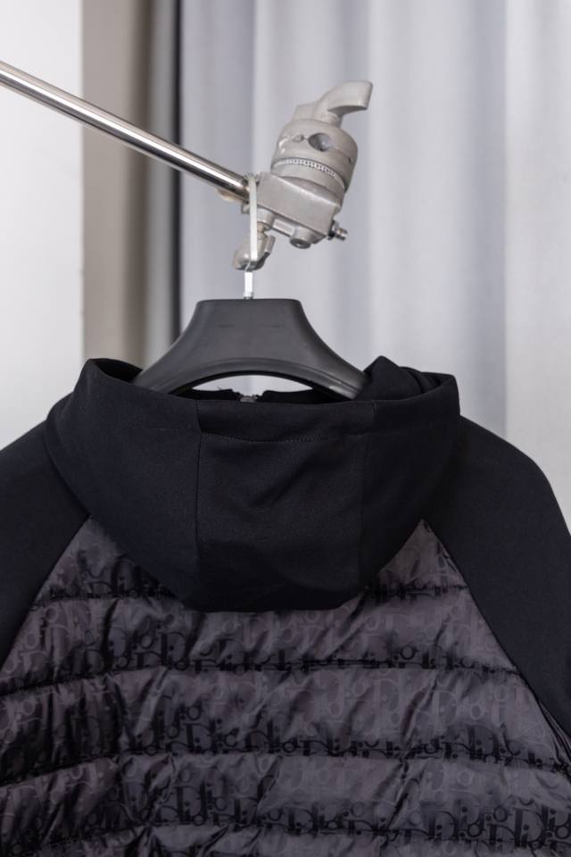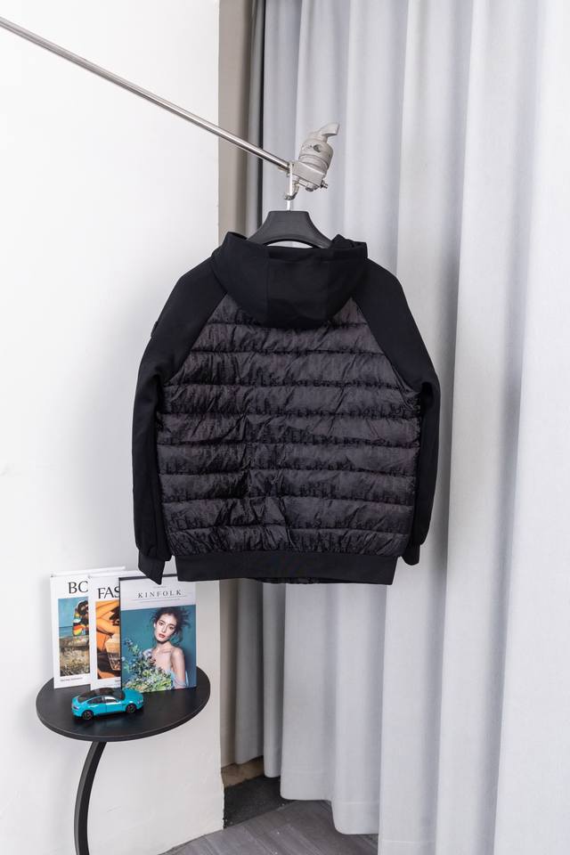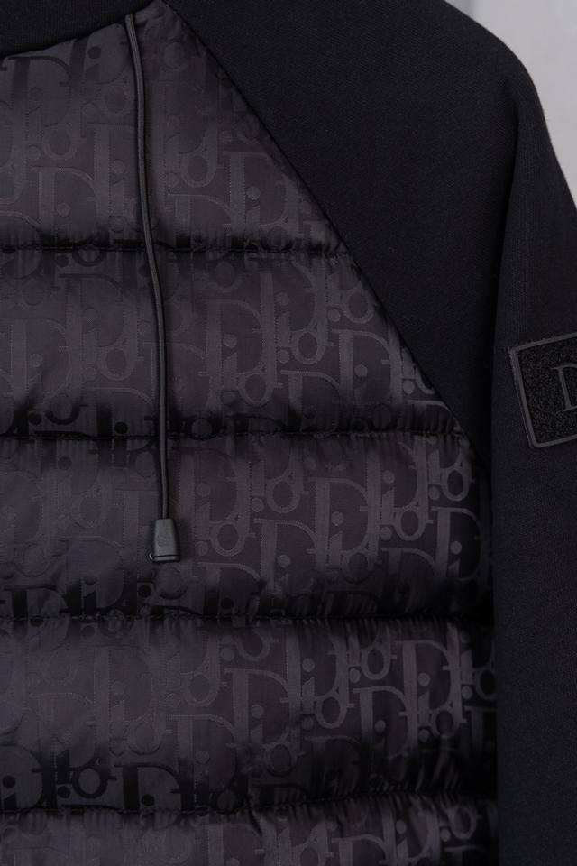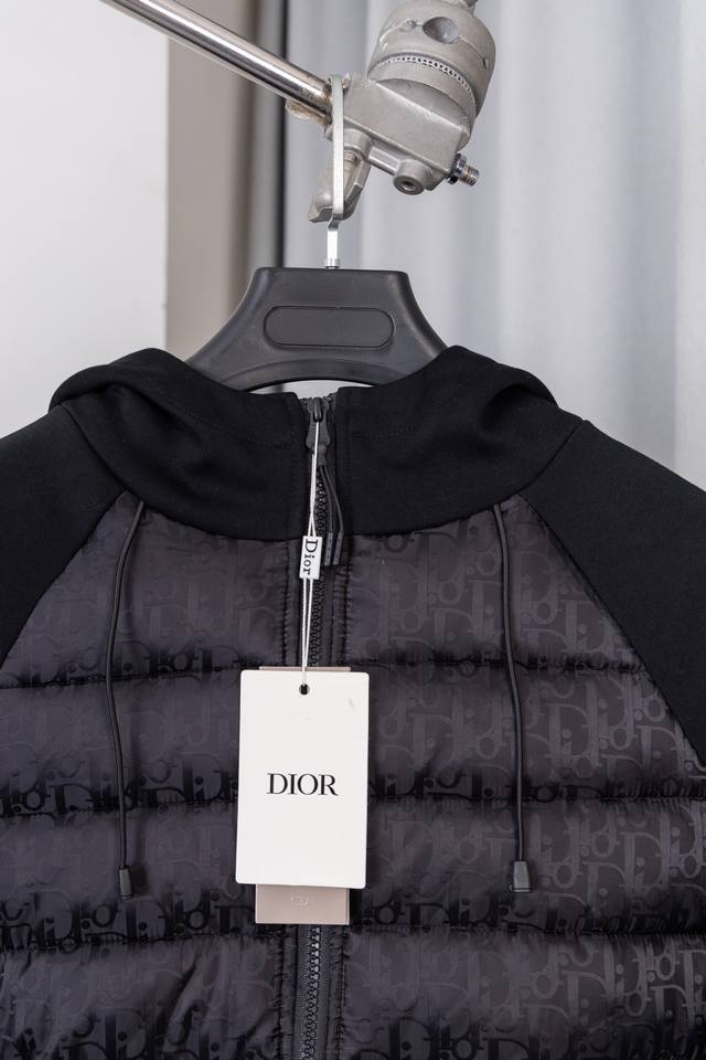 When the classic monogram of a Parisian fashion house meets the essential need for warmth, this Dior hooded down jacket redefines the way to wear luxury winter clothes with its "high-end patchwork" and "iconic recognizability". The entire garment is covered with the Dior Oblique monogram, a classic symbol of the brand spanning half a century. The subtle interweaving of patterns reveals the luxury brand's pedigree. The three-dimensional Dior leather label on the sleeves reinforces the brand's imprint with understated sophistication, allowing "high-end recognition" to break through boundaries from the details. It is made of high-density heat-locking fabric, and the fluffy down filling structure firmly locks in warmth, so you can easily cope with cold weather. The soft knit material extends to the brim of the hood and the sleeves, injecting a casual and relaxed feel into the structured down jacket and breaking the heavy and dullness of winter clothing. The custom-made metal zipper is smooth and easy to pull, showcasing the exquisite texture of luxury brand hardware. The double-sided concealed zippered pockets combine practicality and a sleek design. The ribbed cuffs fit snugly around the wrist, with stitches as fine as art, embodying Dior's obsession with "ultimate craftsmanship" in every stitch. Paired with suit trousers, it's a sophisticated "urban chic" look; mixed with jeans, it transforms you into a street style icon. The black monogram pattern has an inherent fashionable filter and can be layered with sweaters, shirts, and sweatshirts, ensuring you remain a representative of "high-end taste" in winter fashion. Sizes S-XL.