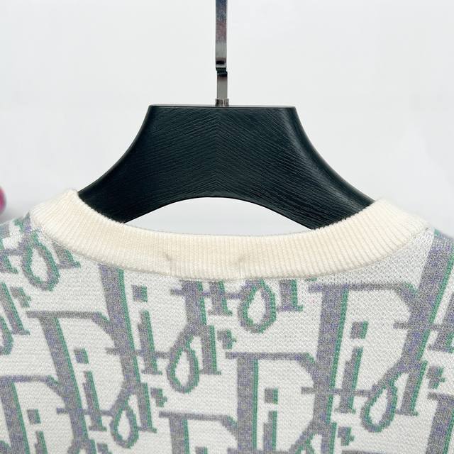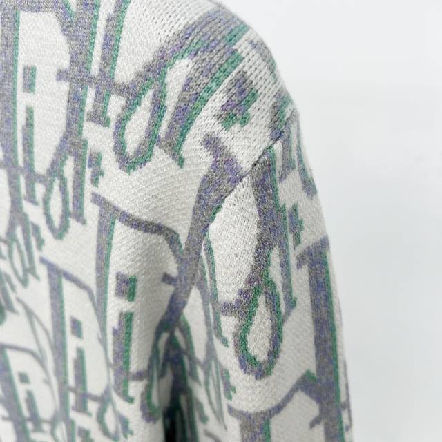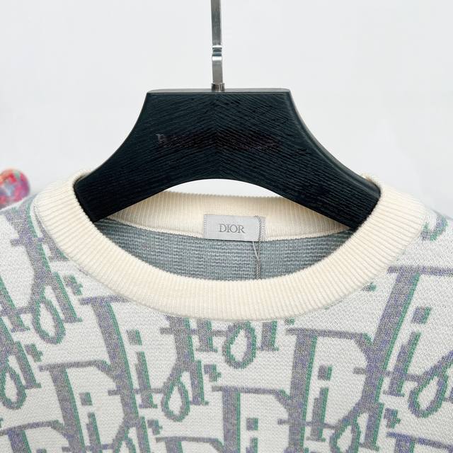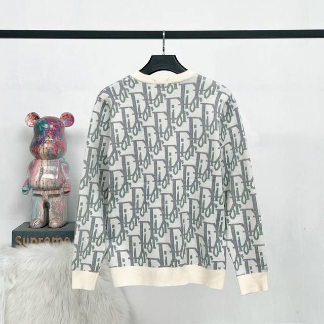 T105# Dior Crew Neck Sweater. Made with custom-knitted combed wool fabric. The all-over monogram jacquard pattern creates a striking visual impact. Made from carefully selected high-quality fabric, it's soft, delicate, and gentle on the skin. It combines warmth and style, allowing for versatile styling throughout autumn and winter. Color: As pictured. Sizes: Xs, S, M, L.