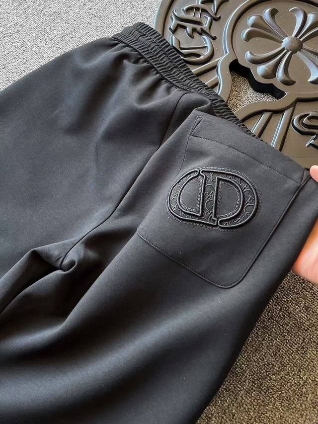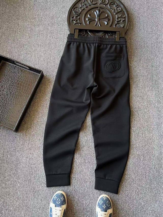 's attention to detail! New Cd department store item, elasticated trousers for couples! Features three layers of high-density 3D embroidery on the front, and multiple layers of embroidered Cd logos on the back pockets, very exquisite! Matte painted drawstring holes and metal pulls add a touch of sophistication! The fully bound lining with double welts is a masterpiece of craftsmanship, the best in the industry!