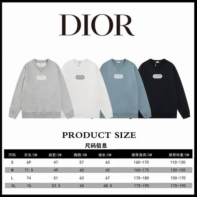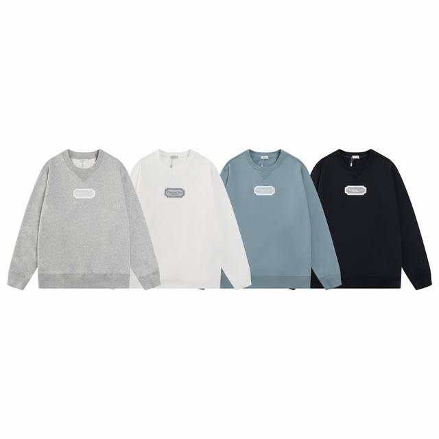 Top-tier version. Official website quality. Dior Fall/Winter classic silver label embroidered crew neck sweatshirt. Made with original, exclusively customized 430g pure cotton terry cloth fabric, extremely comfortable and warm. Distinguished from other top-tier fabrics on the market, it won't shrink, deform, or pill. Features 430g 2X2 ribbed fabric, with the ribbed fabric dyed in the same batch, ensuring no color difference and preventing deformation. Original 1:1 fit, original 1:1 customized accessories, neck label, care label, hang tag, and packaging details are perfect. Style number: 8818# Colors: Black, White, Blue, Gray. Sizes: S, M, L, XL.