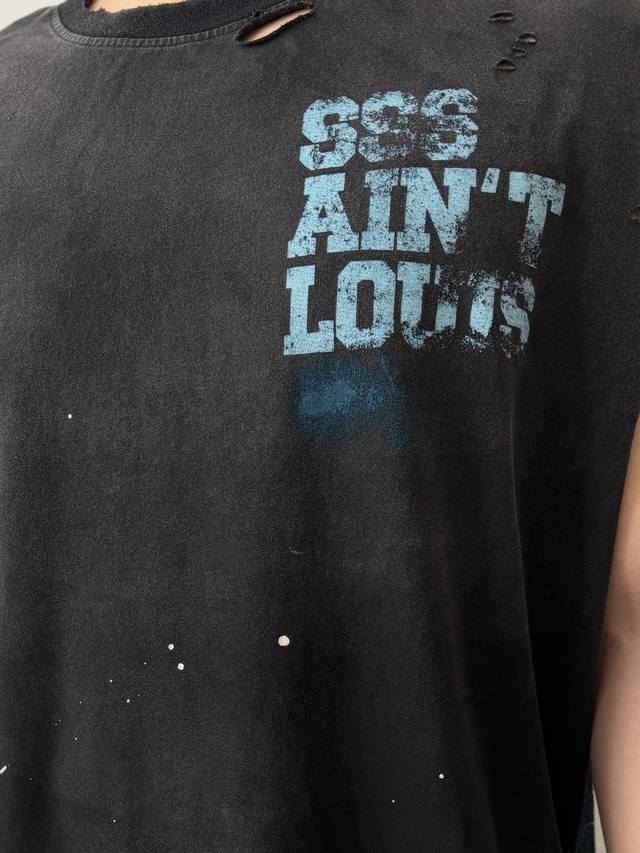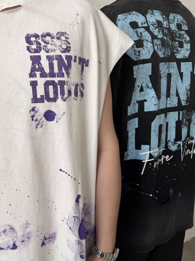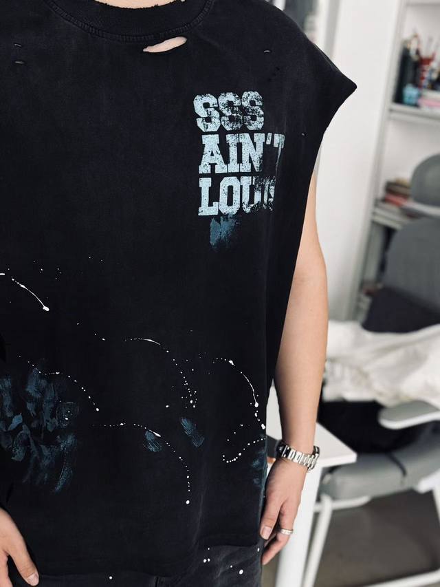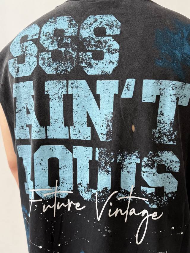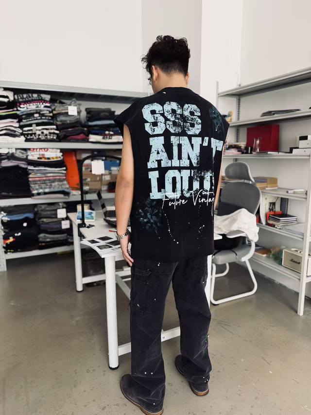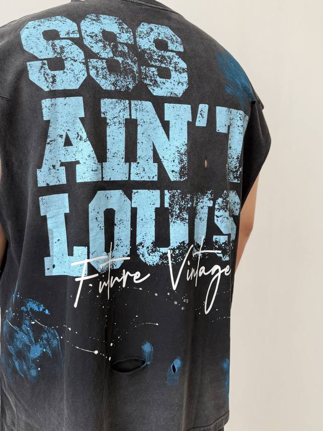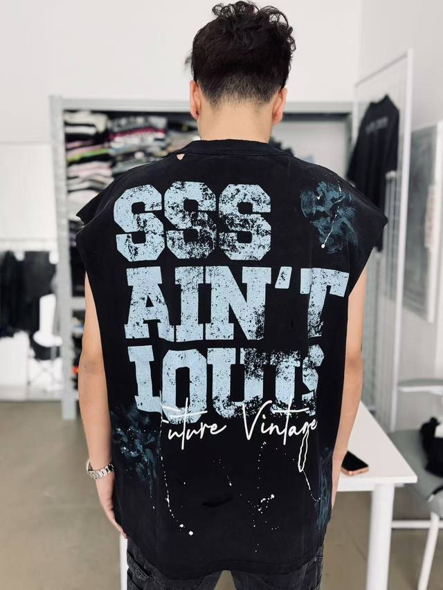 Two-tone Cvt-16 Saint Street Dirty Street Graffiti Style Vest - Hand-painted splatter paint + multiple hand-destructive details + heavy-duty Assault yeast-washed monkey wash process - full of retro and high-end feel. Sizes: M, L, XL, DDD