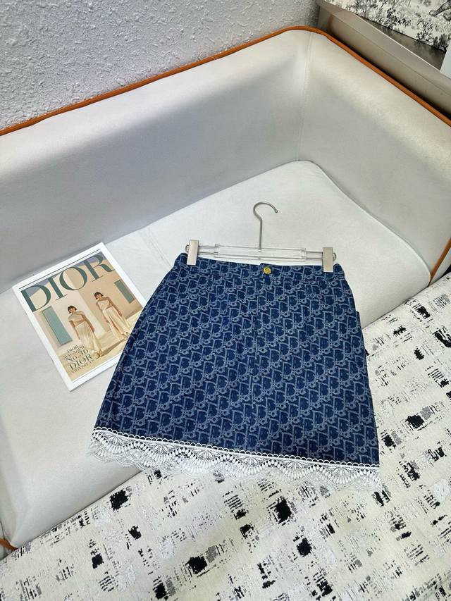 Dior Dior monogram jacquard lace stitching custom hardware button lapel sleeveless top short skirt denim suit