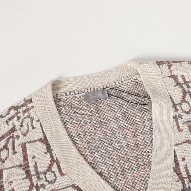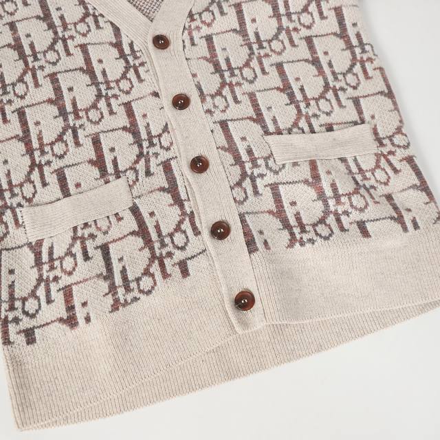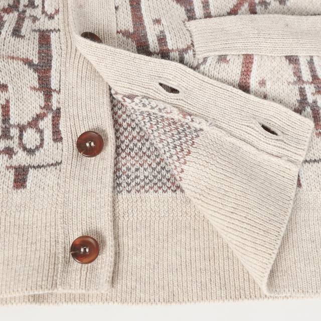 Wool Cardigan by Dior (All-over monogram Wool Cardigan). Made from 100% wool, this cardigan features a 10-count medium-weight weave and is knitted on an imported wool loom. It reinterprets Dior's classic Oblique print. Crafted from a sherbet wool jacquard fabric with ribbed details, it creates a classic silhouette. Pairs well with various outfits to express your individuality. Size: SMLXL