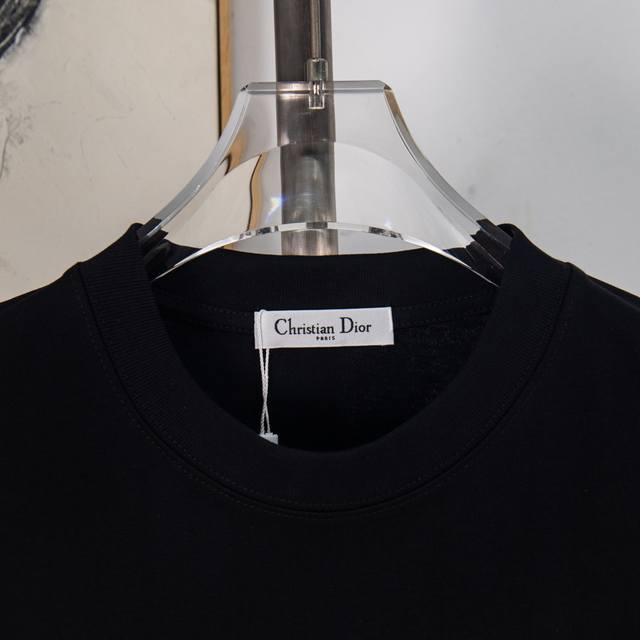 Zp Version [Exclusive Supply] Dior 300g Crew Neck Short Sleeve T-Shirt, featuring classic double-layer fleece lining with embossed logo and lettering. Officially synchronized high-quality version. Stylish, versatile, and trendy. Made with original fabric. Includes hangtag, neck label, and washing label. Colors: Black and White. Sizes: S, M, L, XL. Item Number: Ws10660