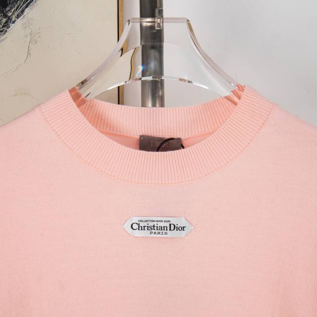 Dior Collar Fabric Logo Knit Base Layer Top. Fabric: 100% cotton-wool blend, original dyeing. Lightweight and breathable, yet with some warmth. Process: Special wash - high-temperature drying - original dyeing color. This knit top is a new addition to the 2025 Winter Men's Collection, adorned with the Christian Dior Paris logo label to elevate its style, showcasing Dior's haute couture spirit and paying homage to the exceptional craftsmanship of the Dior ateliers. Carefully crafted from black cotton-wool plain knit fabric, its exquisite and soft texture is unique. Pairs well with jeans and tailored trousers for an elegant and classic look.