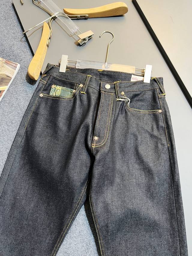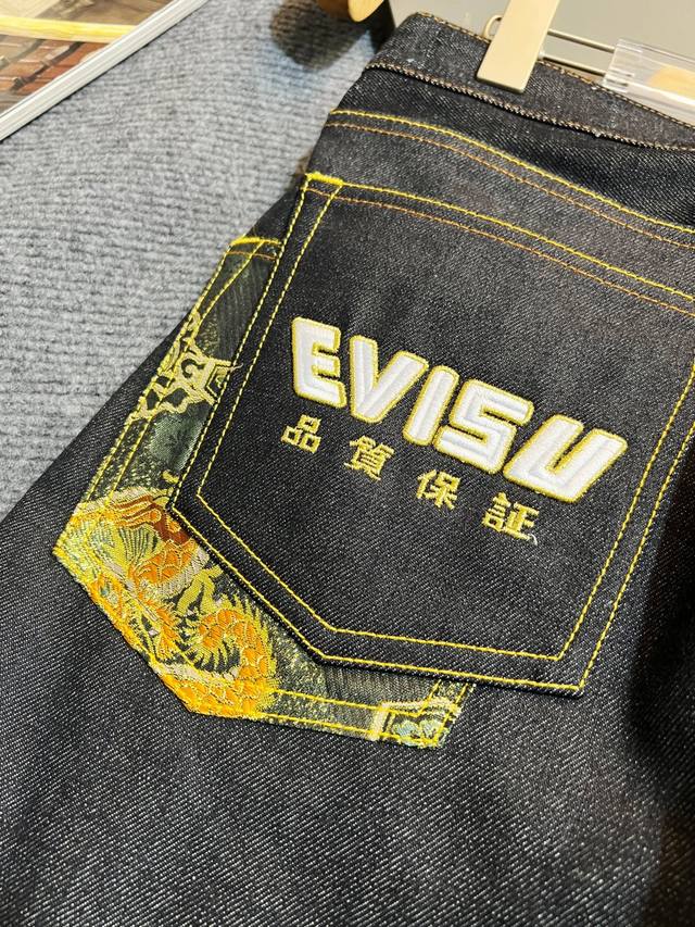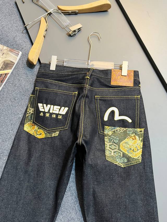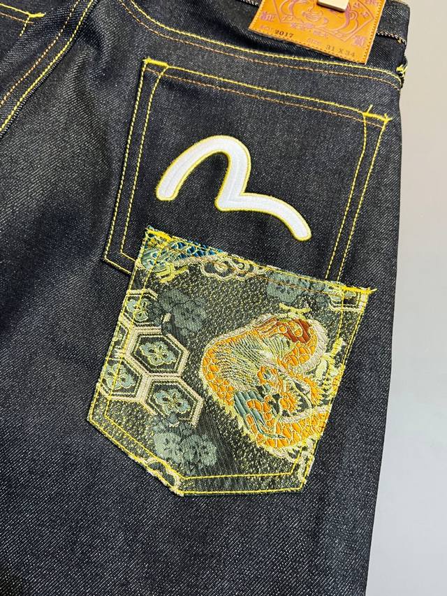 Evisu Aw23 Brocade and Seagull Multi-Pocket Skinny Jeans for Men in Denim Blue.
