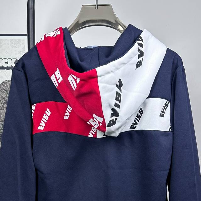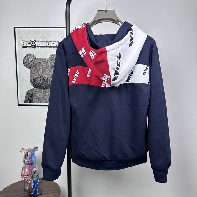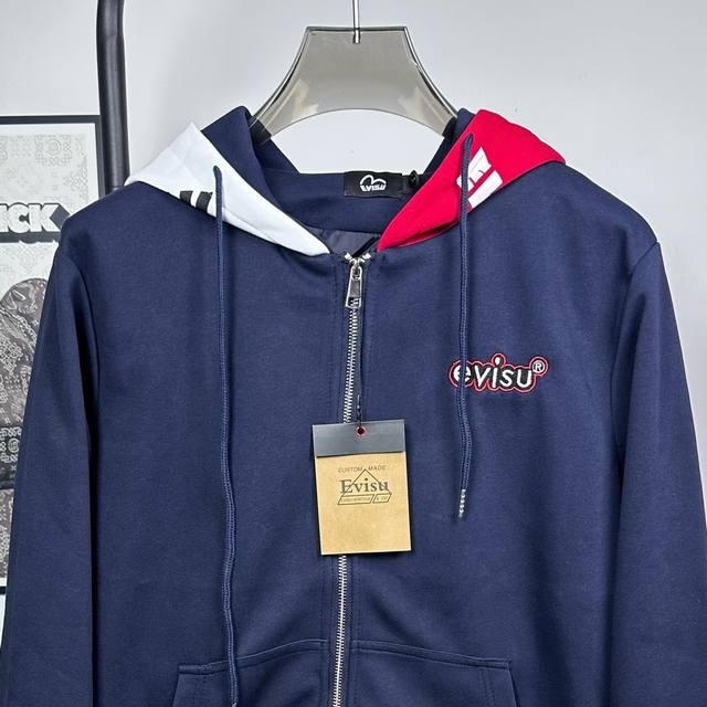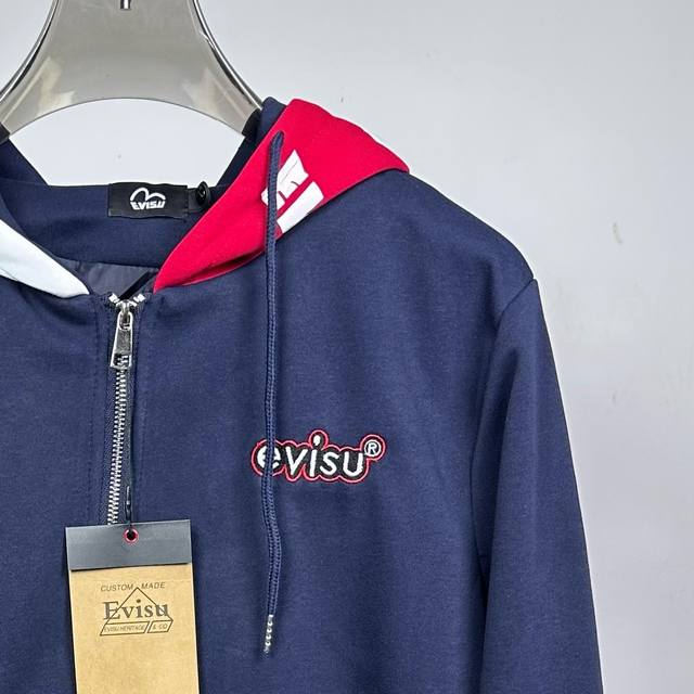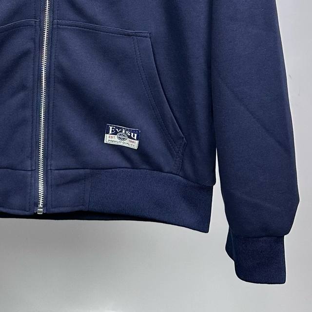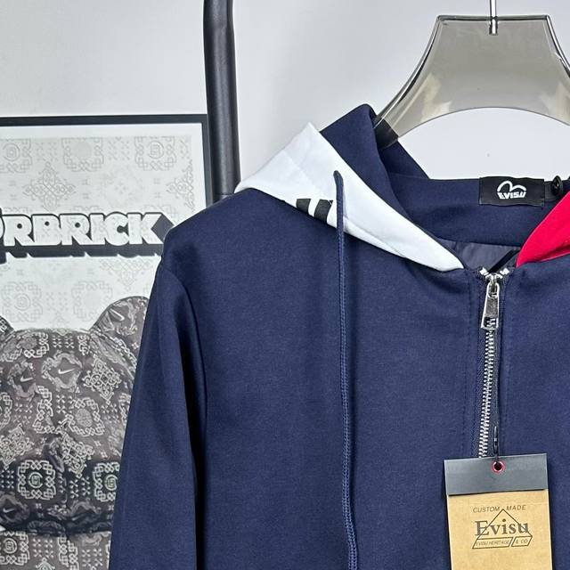 Style number: Z40 2025 new Fushen hooded sweatshirt jacket, navy blue with red