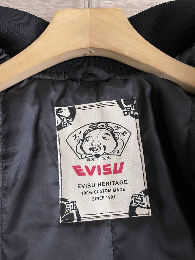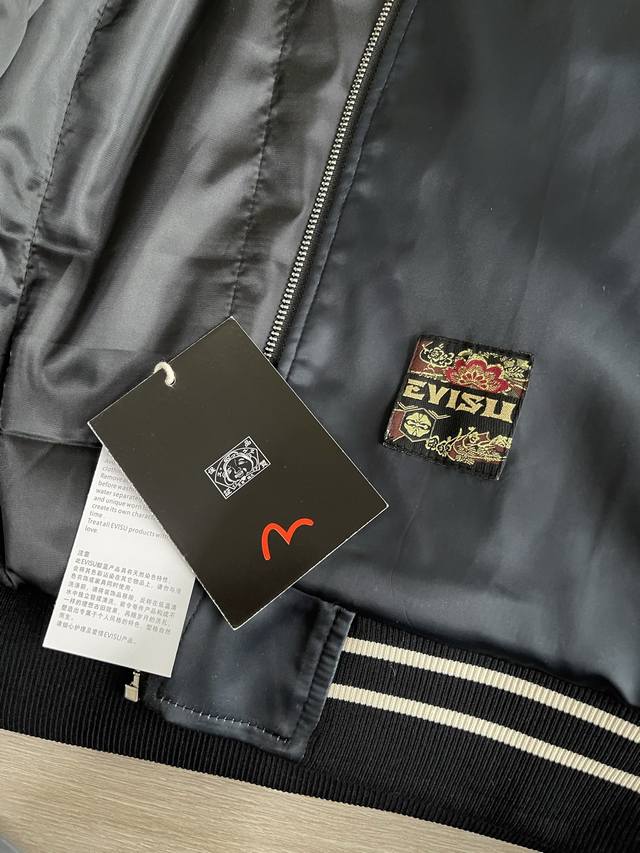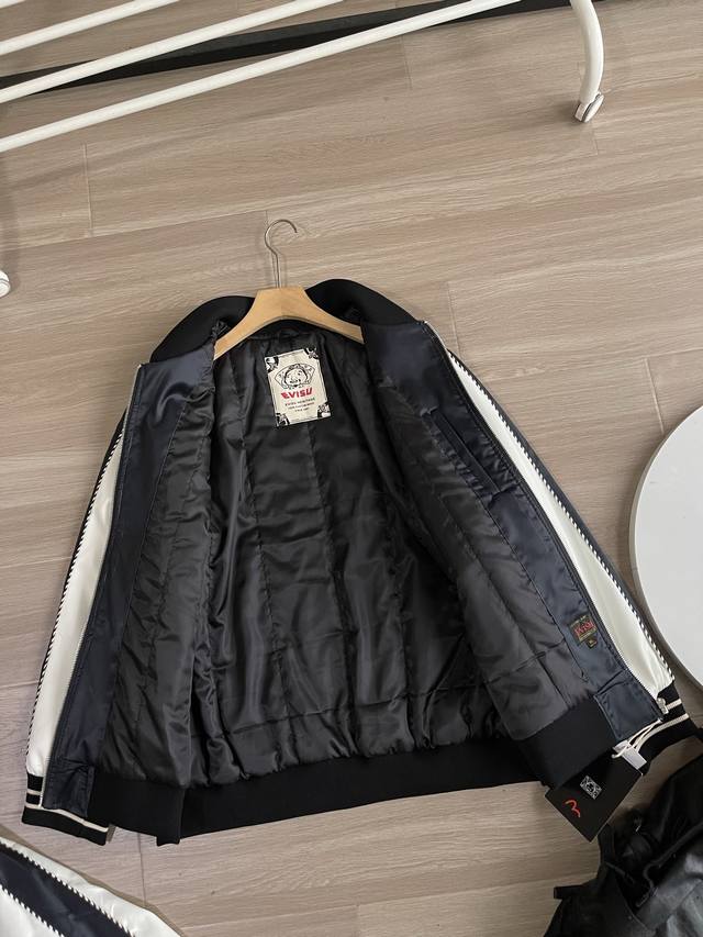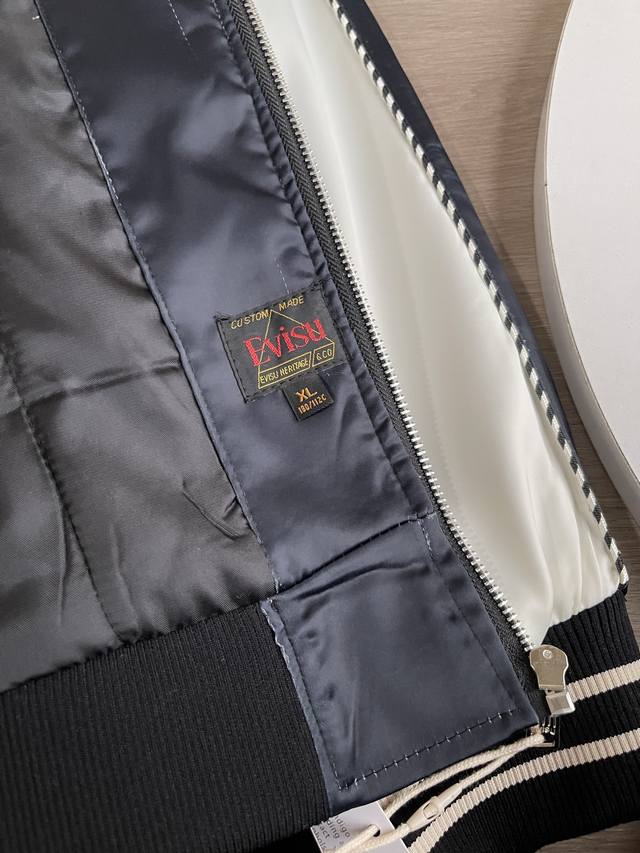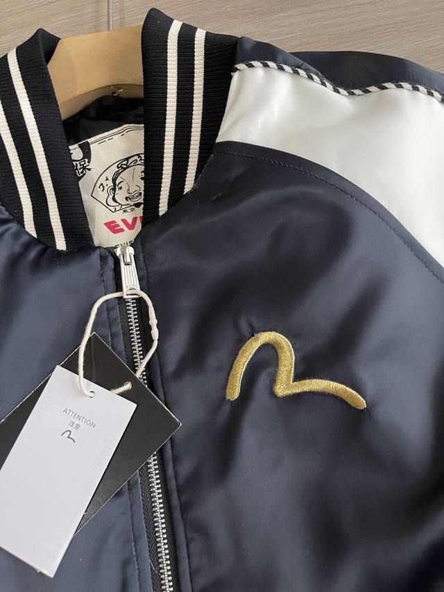 Evisu Fukujin 25 Autumn/Winter Fuji Ukiyo-e Embroidered Yokosuka Cotton Baseball Jacket Color: Blue-Grey Craftsmanship: Printed, Embroidered Style: Yokosuka Cotton Jacket Equipped with anti-counterfeiting label, not sold on the official website! Silk fabric. The back features a Japanese Ukiyo-e style with traditional mythical creatures, Mount Fuji, and pine trees, incorporating brand elements for a culturally rich and trendy look. Wearing it will effortlessly showcase your personality and make you stand out on the street! #MountFujiPineTree #Vintage #LionDanceMountainPainting Sizes S~XXL (Runs large) Length: 68 70 72 74 76 Chest: 124 128 132 134 138 Shoulder/Sleeve Length: 76 78.5 80 81.5 83 7