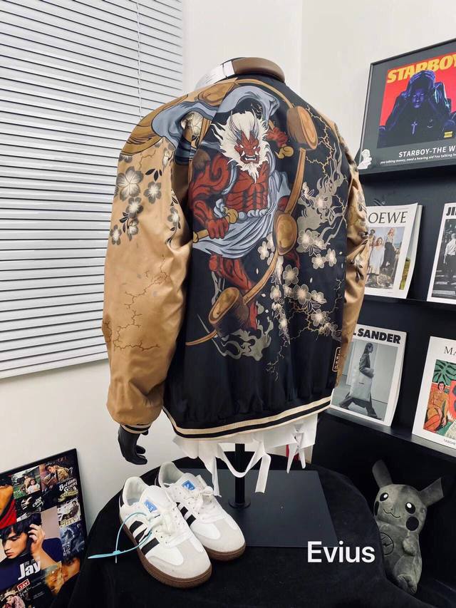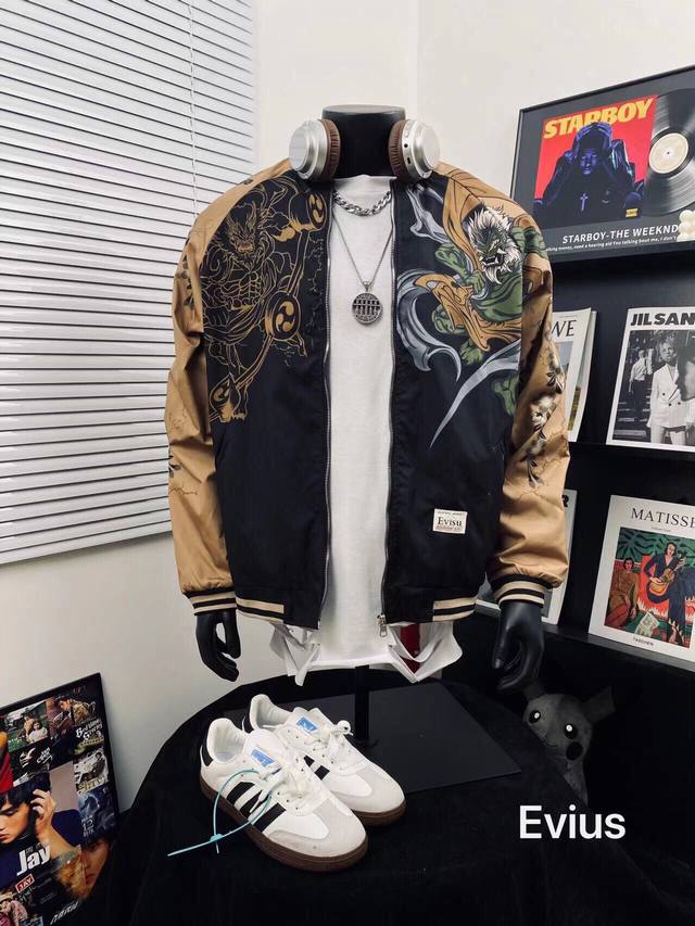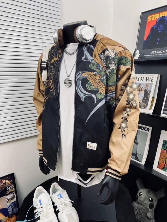 Evisu Fushen Devil Spliced Retro Jacket, Unisex Style, Perfect for Couples