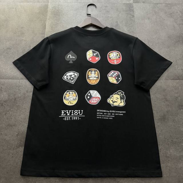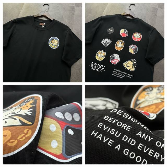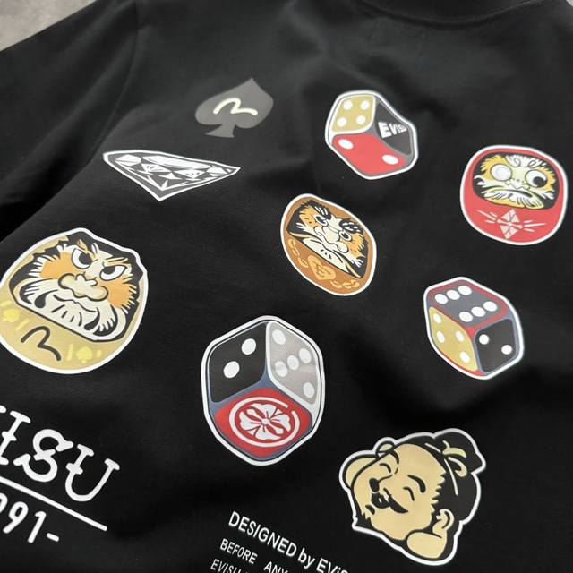 Evisu Fushen short-sleeved men's 2025 new Daruma lucky cat printed casual loose couple T-shirt