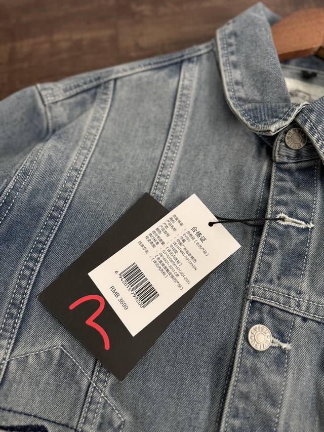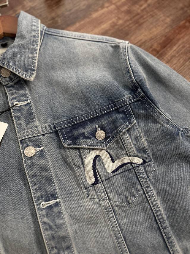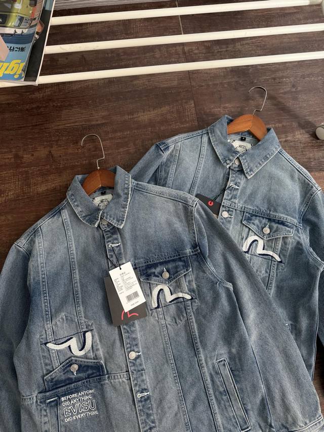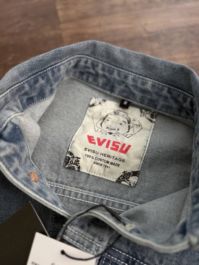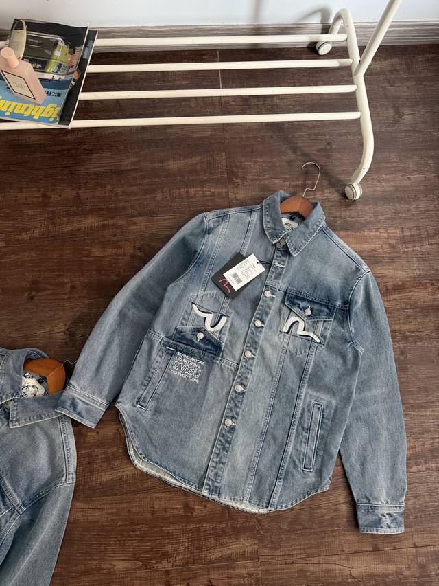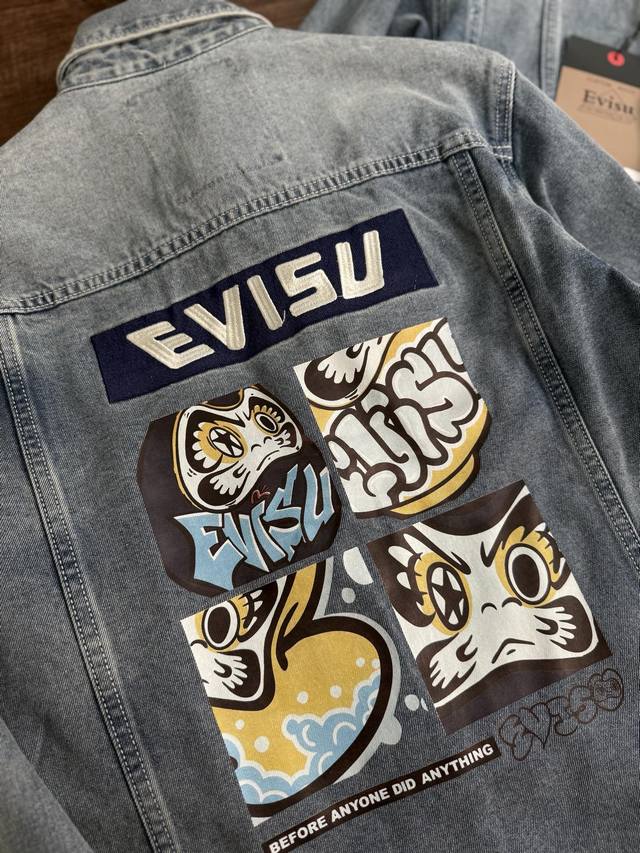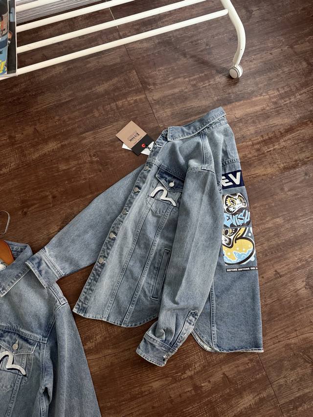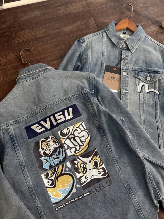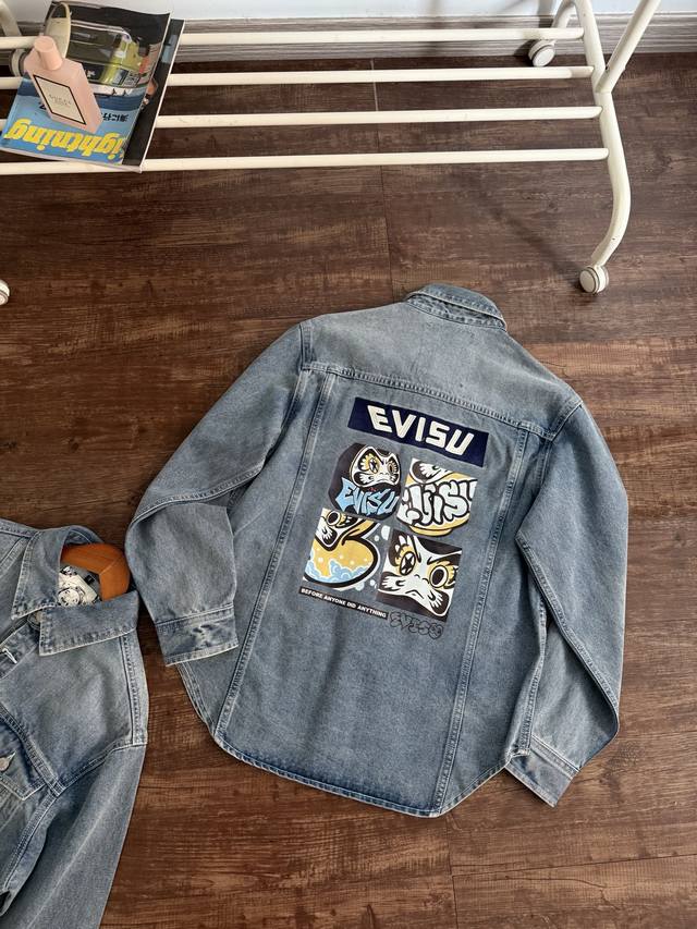 Evisu Men's Daruma Print Trendy Fashionable Versatile Blue Lapel Casual Denim Jacket Shirt Jacket Men's