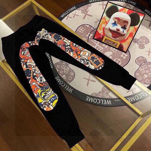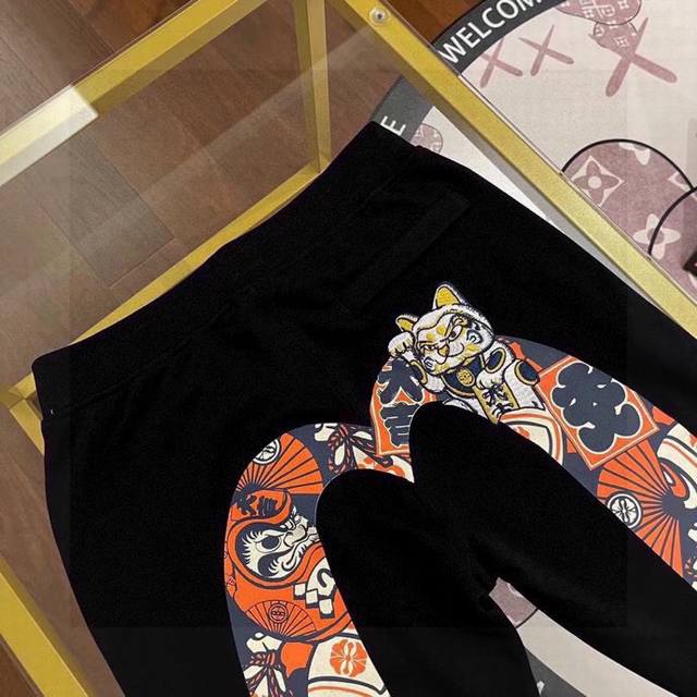 Evisu's new autumn and winter collection with combination prints of origin and maneki neko embroidery for men's casual sweatpants