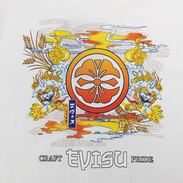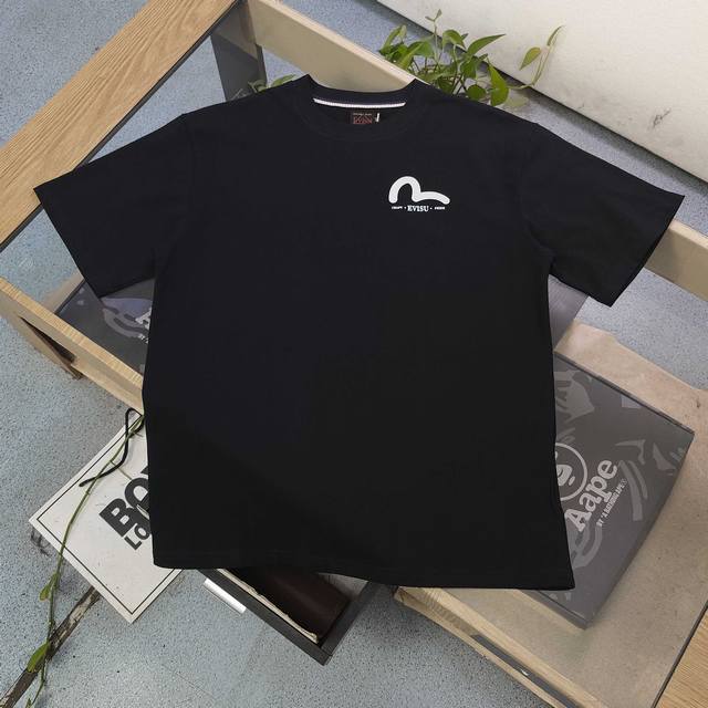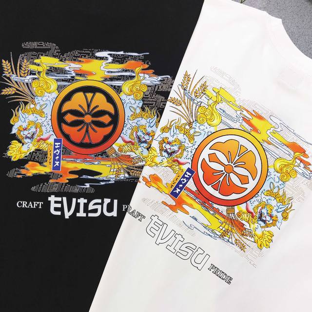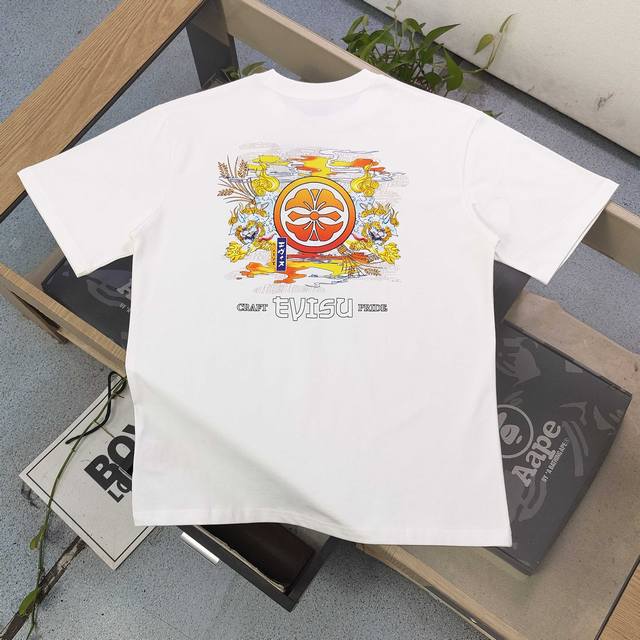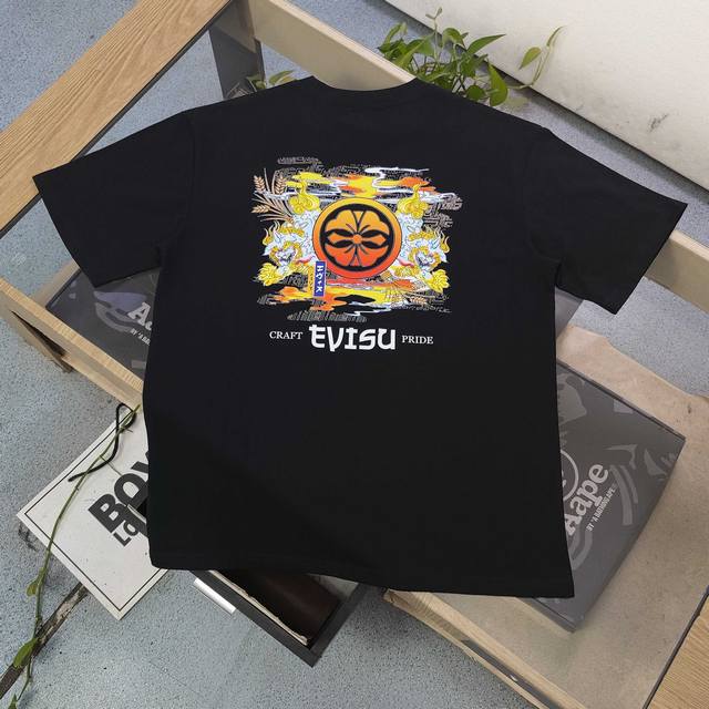 2025 new Evisu Fukushin with double Komainu cherry blossom pattern Logo letter print casual couple round neck short-sleeved T-shirt, classic will never go out of style, a must-have for everyone, 250G double yarn pure cotton does not pill or lint, the texture is absolutely comparable! Environmentally friendly imported printing paste! Quality assurance, customized fabrics, customized dyeing, patina printing, environmentally friendly and no cracking, welcome to compare quality, same style for men and women!