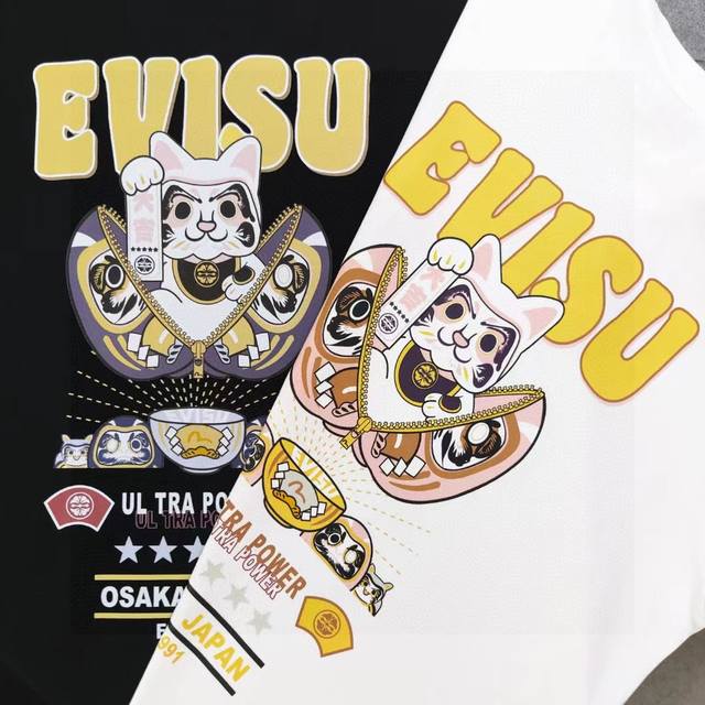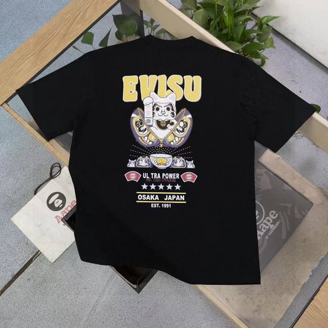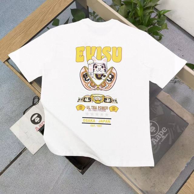 2025 spring and summer new Evisu Fushen cartoon letter E lucky cat pattern printed casual couple round neck short-sleeved T-shirt, classic will never go out of style, a must-have for everyone, 250G double yarn pure cotton does not pill or lint, the texture is absolutely comparable! Environmentally friendly imported printing paste! Quality assurance, original fabrics, custom dyeing, patina printing, environmentally friendly and no cracking, welcome to compare quality, same style for men and women!