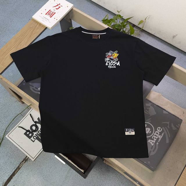 2025 new Evisu Fushen sci-fi tumbler pattern letter logo printed casual couple round neck short-sleeved T-shirt, classic will never go out of style, a must-have for everyone, 250G double yarn pure cotton does not pill or lint, the texture is absolutely comparable! Environmentally friendly imported printing paste! Quality assurance, customized fabrics, customized dyeing, patina printing, environmentally friendly and no cracking, welcome to compare quality, same style for men and women!