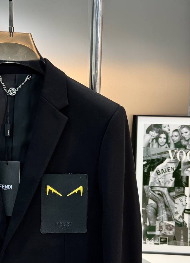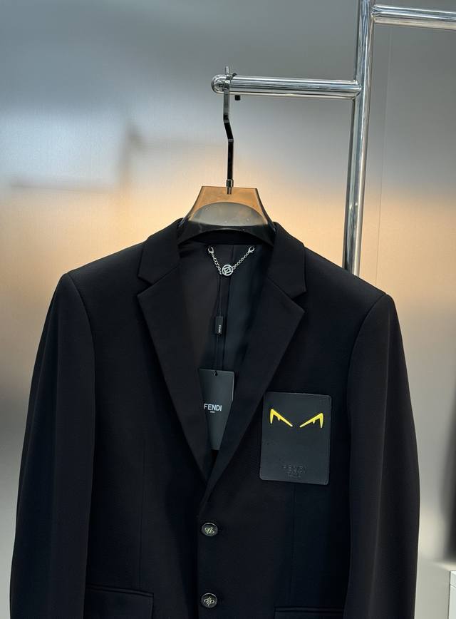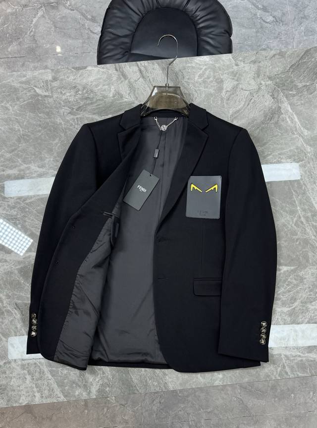 Fend* Casual Suit Jacket - Recommended by long-time customers, order from a foreign trade company! Exquisite leather monster detail on the chest. High-end feel! Imported original four-way stretch fabric, crisp and with excellent drape. The stitching is neat and even throughout the garment. All hardware, buttons, and accessories are top-quality, custom-made with the customer's logo. It's clearly high-end fabric. This kind of fabric is custom-woven! A high-quality product from a reputable factory! Very practical. Sizes: M-3XL, Slim fit 4XL (custom orders possible). 175cm, 150kg, XL recommended.