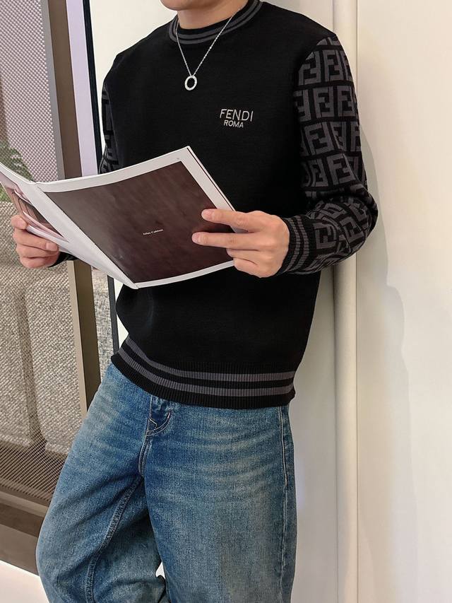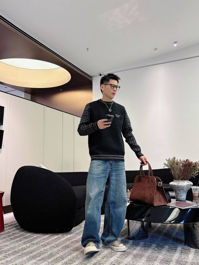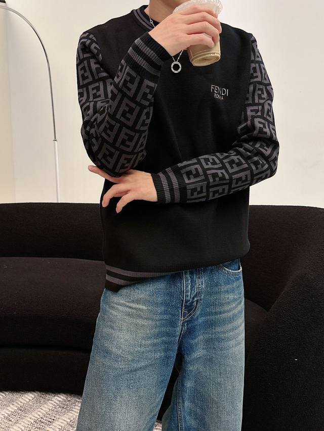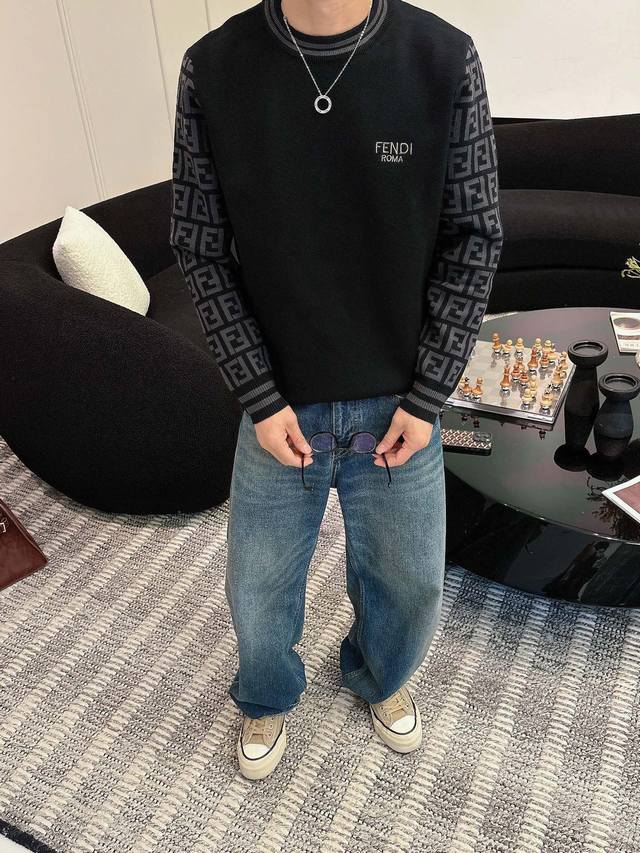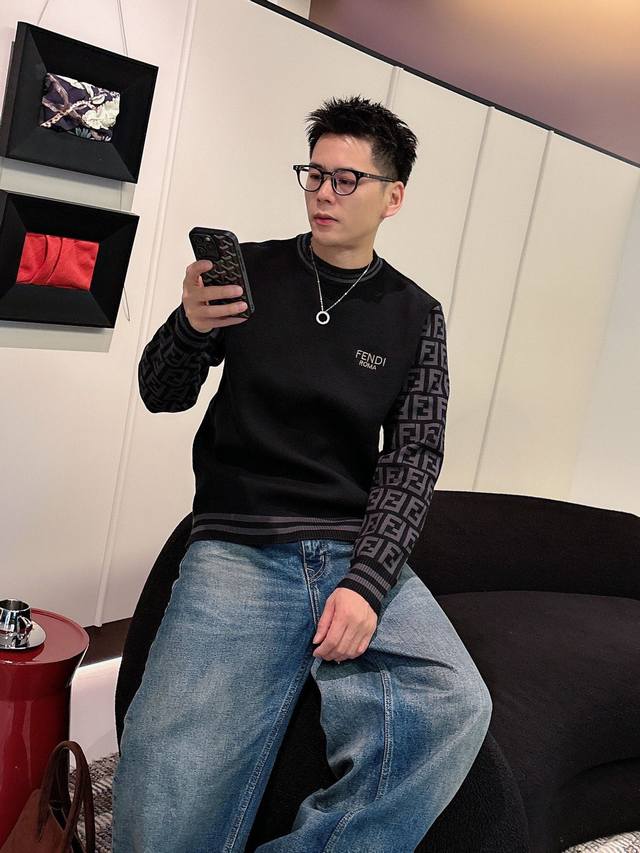 Fendi 2025 Autumn/Winter Wool Blend Pullover Knit Sweater is a highlight, with details that accentuate its quality. The overall design is stylish and modern. The fitted cut and slightly fitted neckline make it look younger and more fashionable. The fabric is a custom-woven wool blend that is easy to care for, has a wool-like texture, and is comfortable and warm. It looks high-end while also having a good drape. Sizes M-3XL DDD