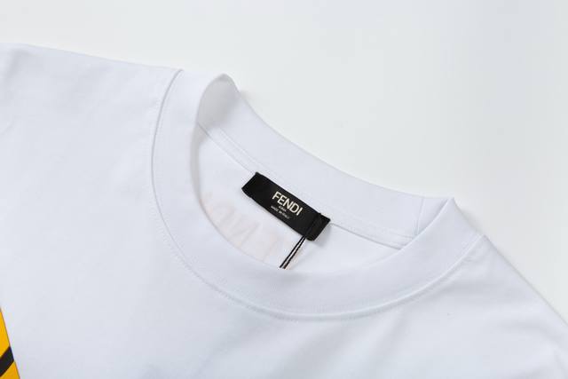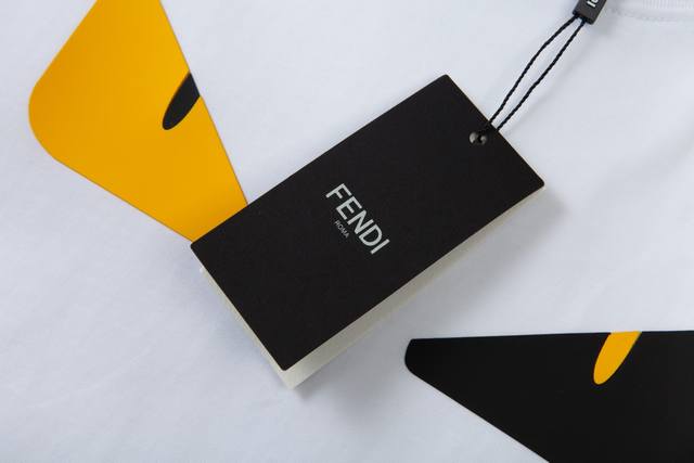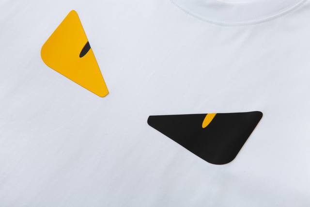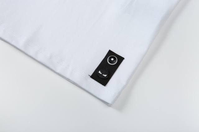 4202, high-end customization, exclusive and highest quality version of Fendi*'s monster eyes round neck short-sleeved T-shirt, using exclusive customized 290G original 1:1 double-ply double-yarn pure cotton fabric, custom-woven and dyed in the same vat without color difference ribbing, customized 1:1 accessories, three labels complete, oversize loose version, fine workmanship, perfect workmanship, soft and comfortable fabric without deformation, the same style for men and women, different market versions, specializing in high-end top products, welcome to compare the quality at will.
