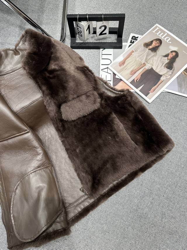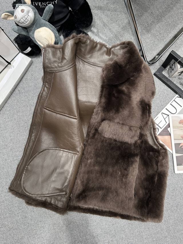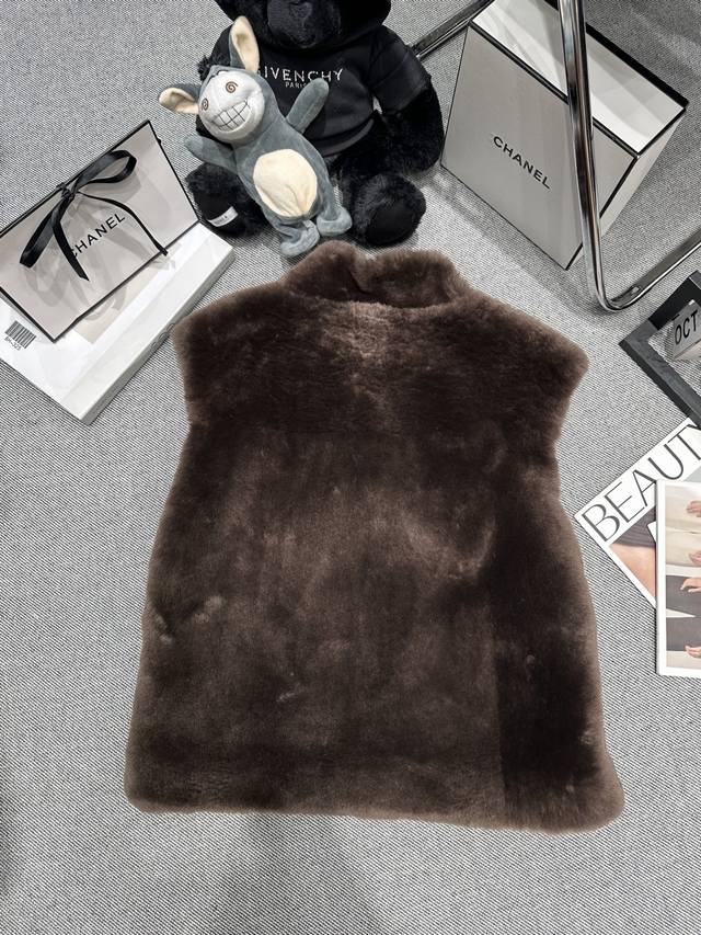 Fend* 2025 Autumn/Winter New Style Fur-lined Vest. Features a lapel design and symmetrical fur pockets. The overall style is luxurious and sophisticated. The fur fabric is soft, fluffy, and has a delicate texture, providing excellent warmth. Suitable for layering with various items. Sizes S-XL