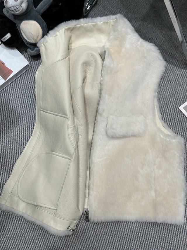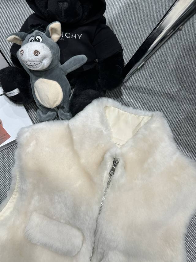 Fend* 2025 Autumn/Winter New Style Fur-lined Vest. Features a lapel design and symmetrical fur pockets. The overall style is luxurious and sophisticated. The fur fabric is soft, fluffy, and has a delicate texture, providing excellent warmth. Suitable for layering with various items. Sizes S-XL
