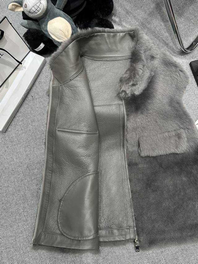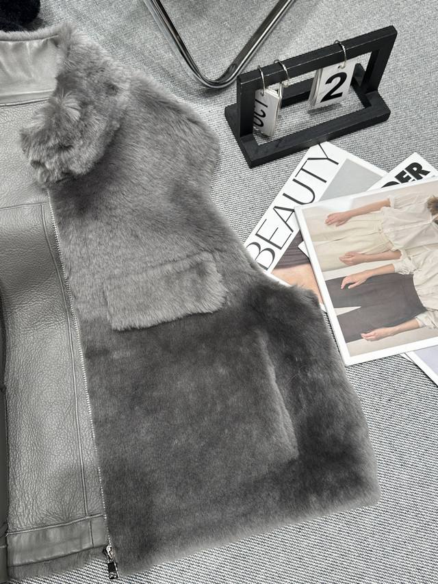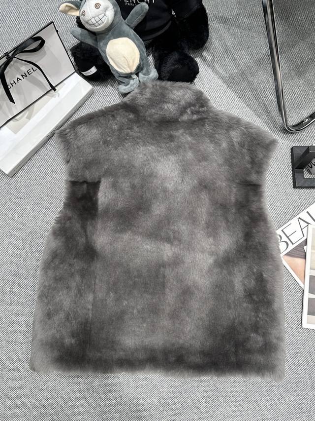 Fend* 2025 Autumn/Winter New Style Shearling Vest. Features a lapel design and symmetrical fur pockets. The overall style is luxurious and sophisticated. The shearling fabric is soft, fluffy, and has a delicate texture, providing excellent warmth. Suitable for layering with various items. Sizes S-XL