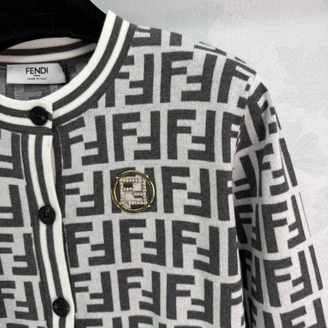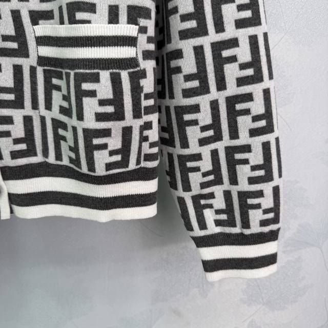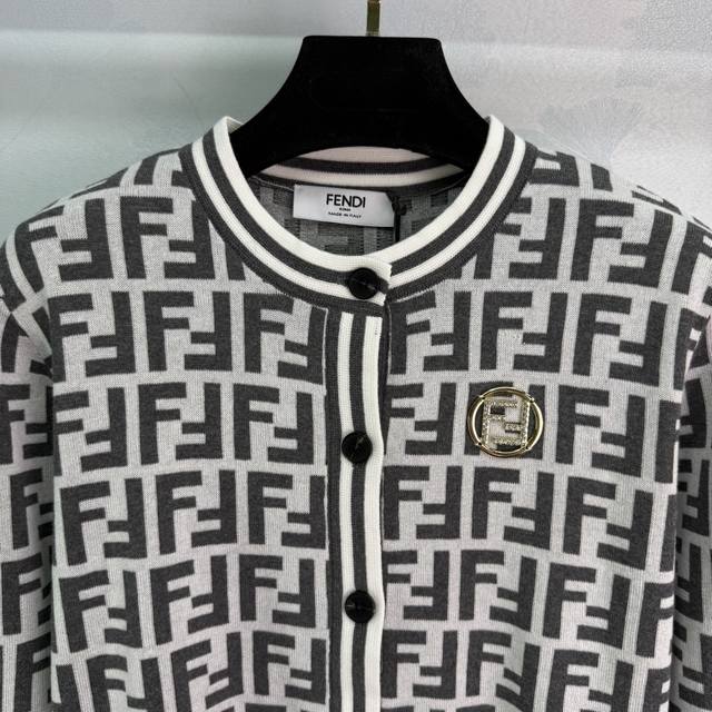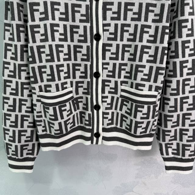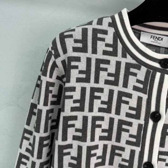 Fend* 2025 Early Fall new jacquard knitted round neck cardigan. Made from custom
