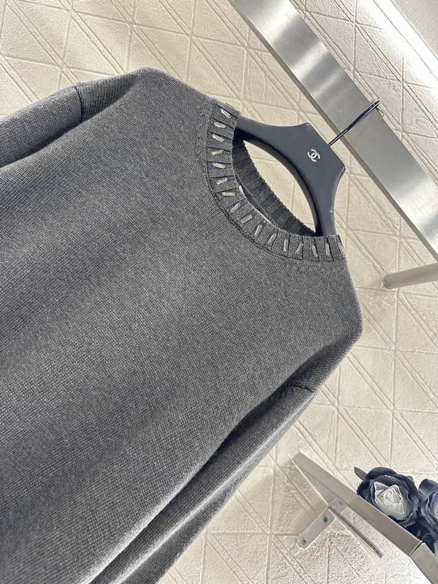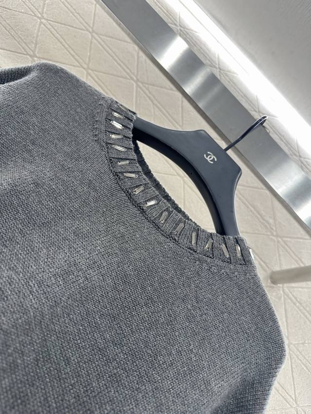Fend* 2025 New Arrival Round Neck Knit Sweater with Rhinestone Trim. Custom Yb w