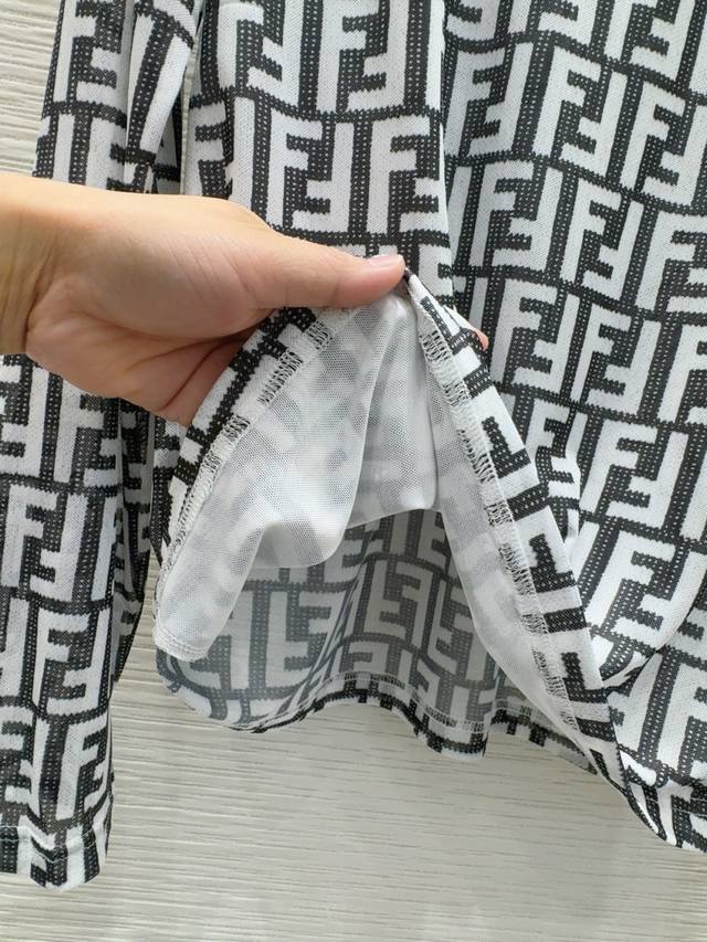 Fend* 2025Fw new mesh base shirt with see-through print, luxurious and soft, stretchy and comfortable, full of high-end wear. Semi-transparent innovative fabric is light and soft, and the real thing is amazing! Tight fit, flattering, and versatile. It looks great under a jacket and looks great too! High-quality workmanship, see the details. Sml S Shoulder Width 38cm, Chest 88cm, Length 58cm, Sleeve Length 60cm