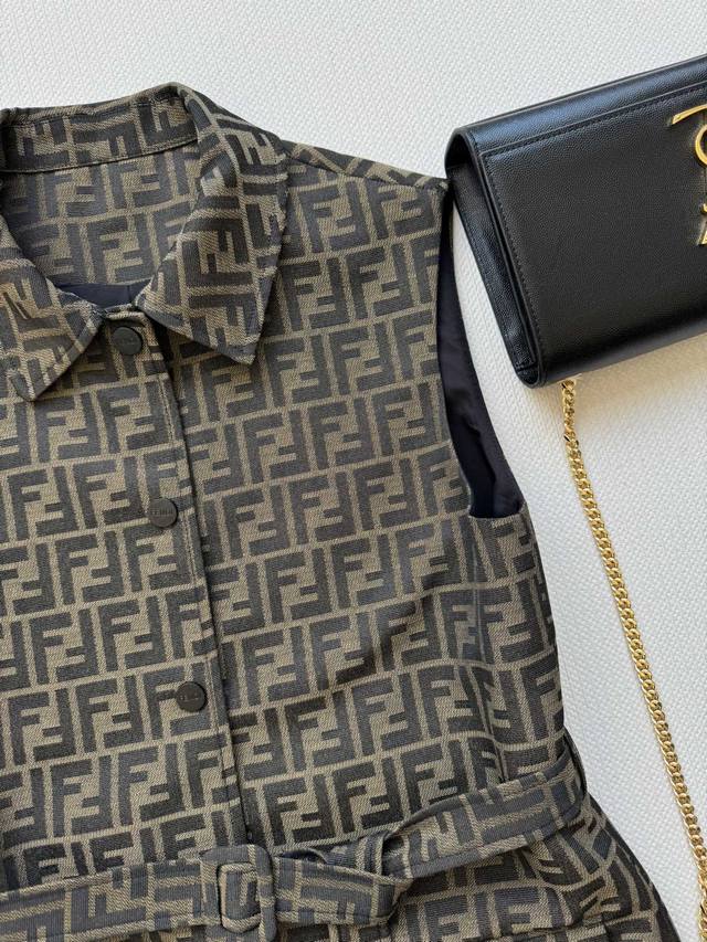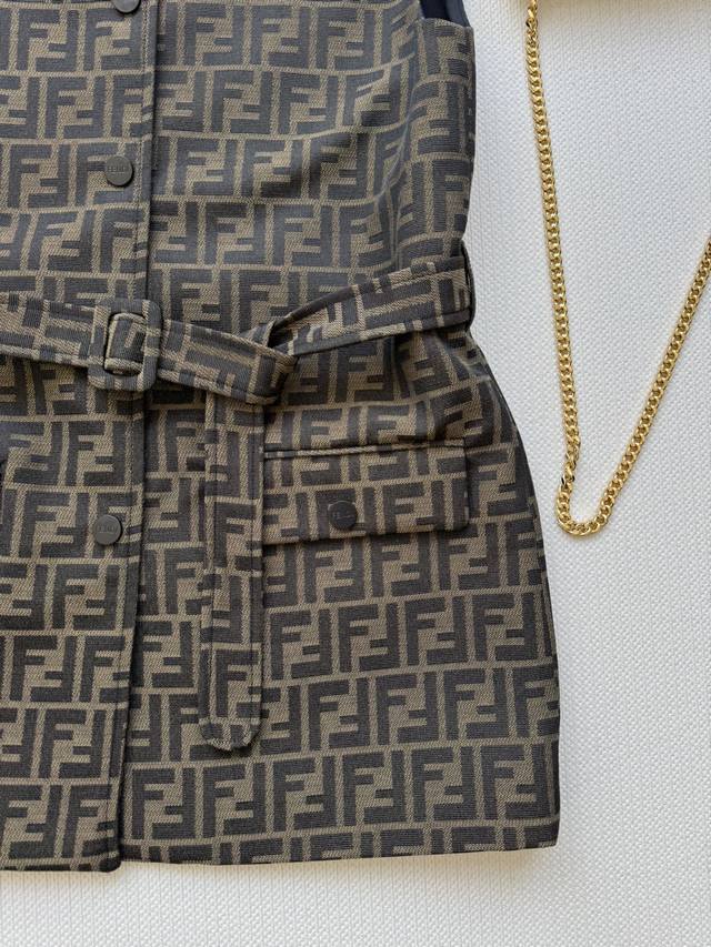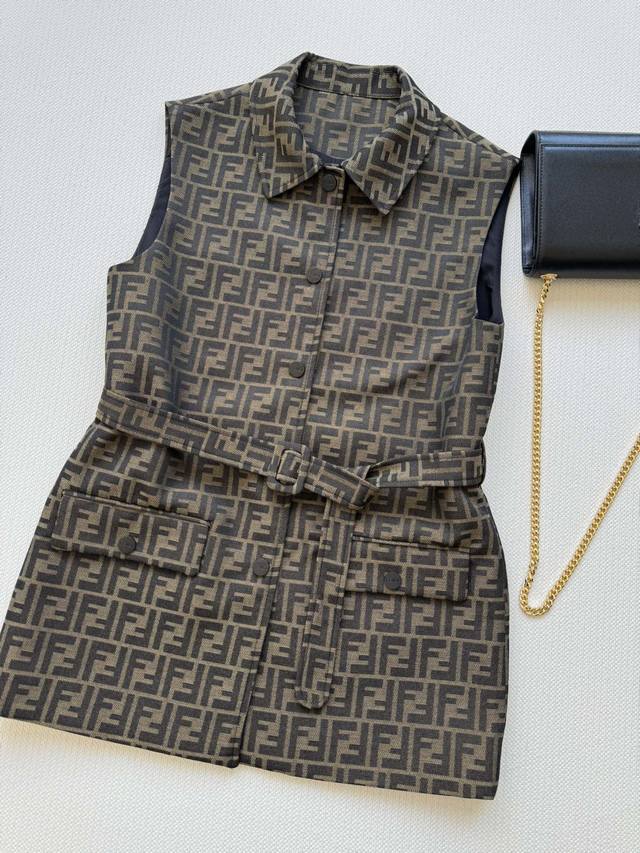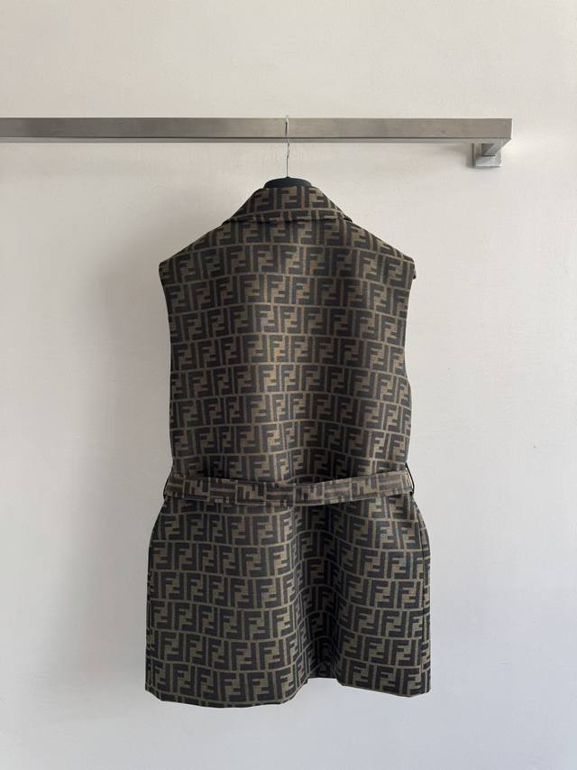 Fend* 25Fw's new jacquard vest is custom-made with Yb jacquard material, creating a premium look. The three-dimensional cut and full-length double F design accentuate the design, creating a stylish silhouette. The straight shoulder design fits snugly to the upper body, instantly concealing excess and creating a slimming effect. The printed logo and fabric belt detail further enhance the waistline and create a more proportionate look. This simple piece creates a refreshing, stylish, and sophisticated look. Sml-