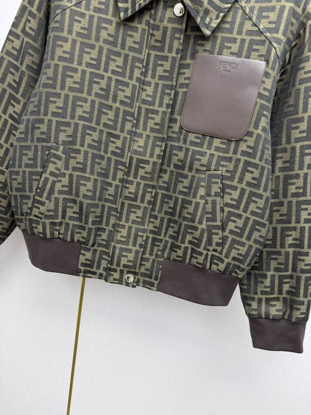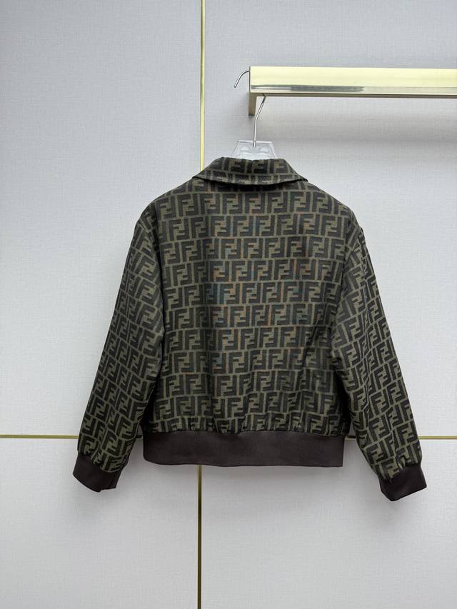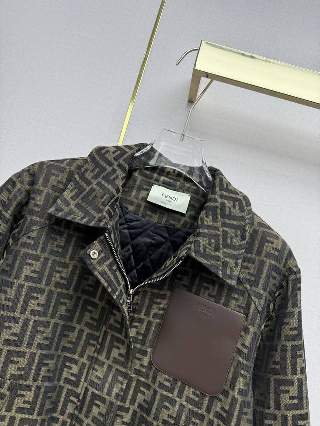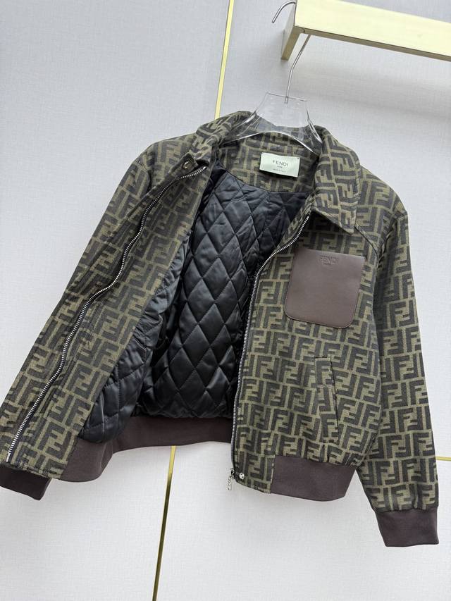 Fend* 25Ss Autumn/Winter New Lapel Jacket, Double F Monogram Jacquard Quilted Fabric, Custom Leather Label Decoration, Exquisite Workmanship, Single Color, Three Codes Smlb808p. DDD
