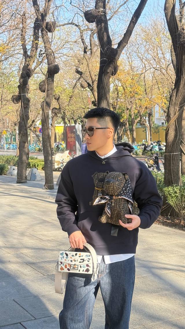 Fend* 26Ss Early Spring New Brown Pattern Puppy Jacquard Hoodie | Exclusive Yb Development! High-Quality Production! Heavyweight cotton blend fabric, dropped shoulders, oversized fit that's both flattering and casual, the hood and kangaroo pocket are the perfect everyday relaxed look. Classic brown base with Ff monogram print featuring a puppy design, paired with a gold chain and brand tag, a cute yet high-end look; unisex; available in sizes S, M, L, D, D.