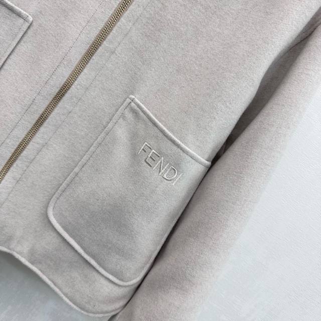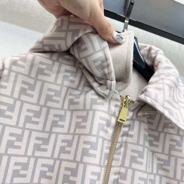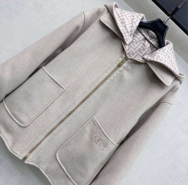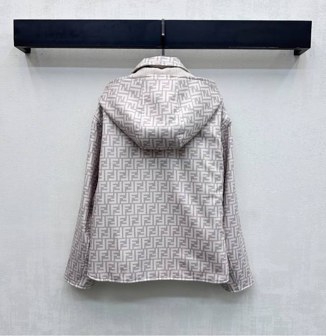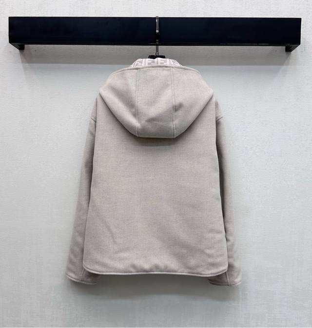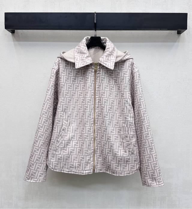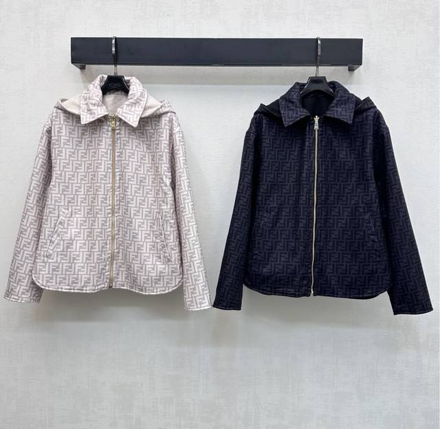 Fend*2025 New Arrival: Detachable Hooded Reversible Jacket, Custom Made with Imported Wool Fabric, Crisp and Stylish with a Distinctive Texture. Adhering to the reversible design concept, one side features a simple solid color with symmetrical large-capacity pockets for added style and layering, while the other side is covered with iconic lettering and logo elements to showcase the brand's identity. New hooded zip-up jacket with a clean and crisp cut, creating a sophisticated and elegant look. Effortlessly stylish and versatile. High-quality version, 2 colors.
