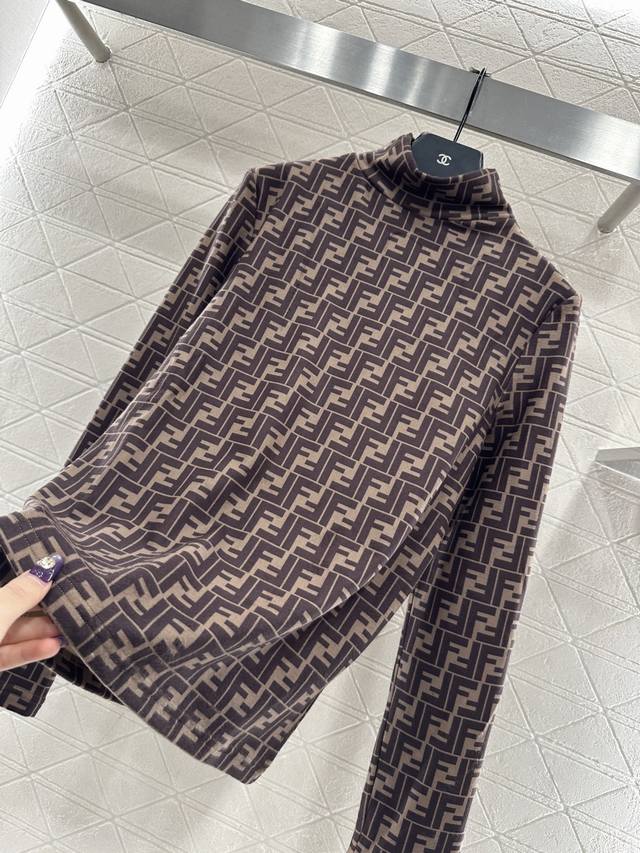 Fend*2025 New Arrival Ddd High-Neck Fleece-Lined Base Layer Top Ddd Custom Yb Imported Elastic Material, Short Fleece Lining for Excellent Warmth, Softness, Comfort, and Excellent Elasticity. High-neck, long-sleeved base layer design, all-brown base layer, versatile and stylish. Adorned with the iconic double-F logo for a touch of sophistication, breaking away from monotony. Slim fit, flattering the figure, slimming and elegant, perfect for a fashionable autumn/winter layer. Suitable for daily commutes, dates, and leisure. Custom-made fabric and accessories, high-quality version. DDD