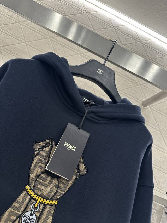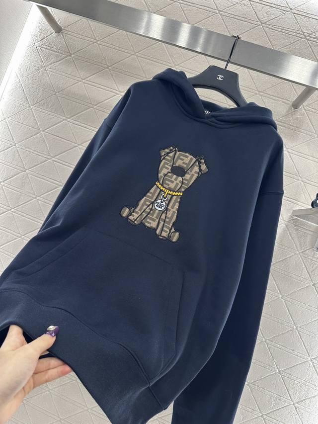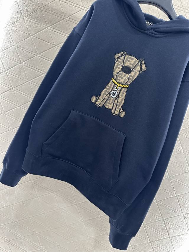 Fend*2025 New Arrival DDD Hooded Puppy Jacquard Pullover Sweatshirt DDD Custom Yb original weight 100% cotton material, restoring quality, visibly high-end, short fleece lining for extra warmth, hooded oversized sweatshirt style, paired with a puppy cartoon pattern double F jacquard logo, contrasting colors for a richer visual effect, showcasing a fashionable style, loose fit, unisex, exudes boyfriend charm, play with gender-neutral style, chic and fashionable. Custom fabric and accessories, look for high-quality black. DDD