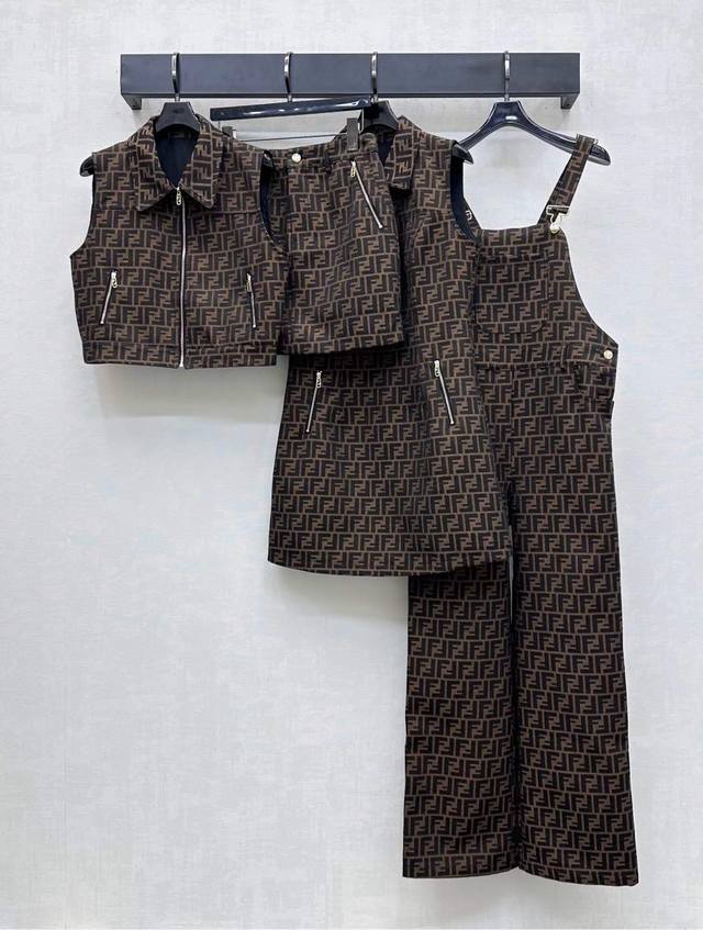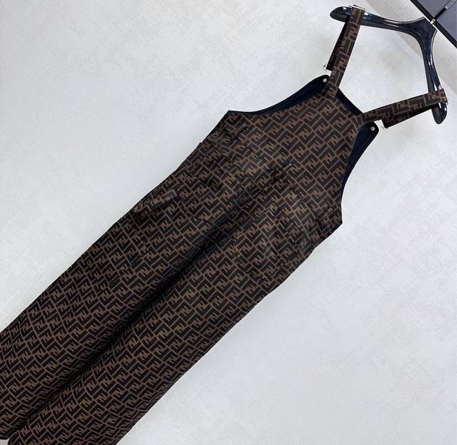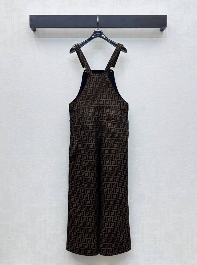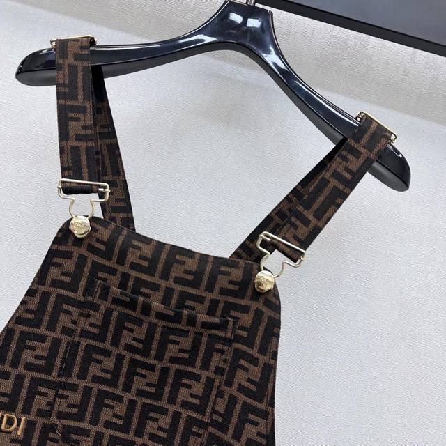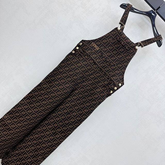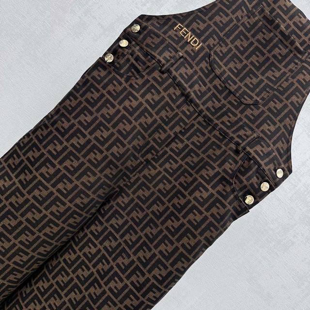 Fend*2025 New arrival Jacquard one-piece suspender pants Customized Yb imported jacquard material with high-quality texture Full of iconic double F jacquard elements throughout the body to highlight the brand tone Adjustable buckle shoulder straps for easy on and off design to add layering to the shape Surface and auxiliary materials development Suspender one-piece trousers tailored to be worn alone or in layers Perfect interpretation of casual luxury Daily wear Casual and neat series development