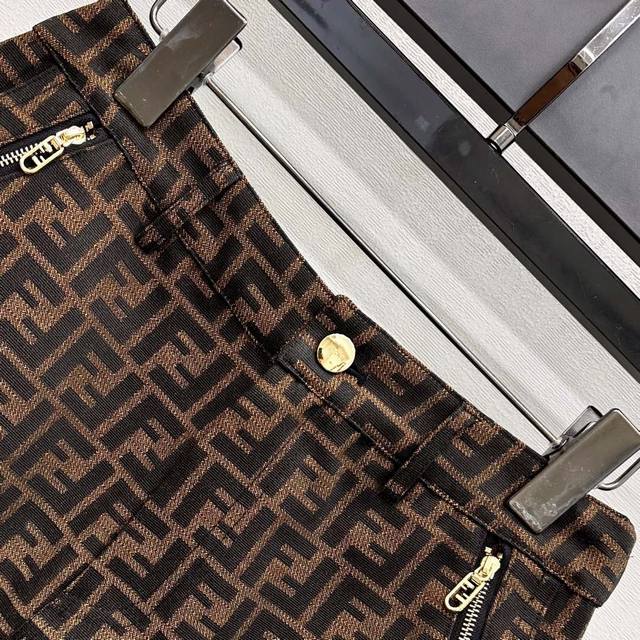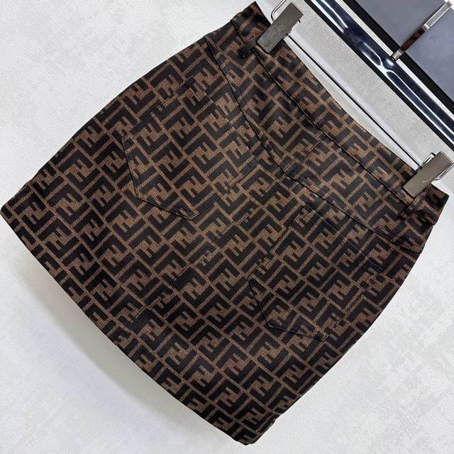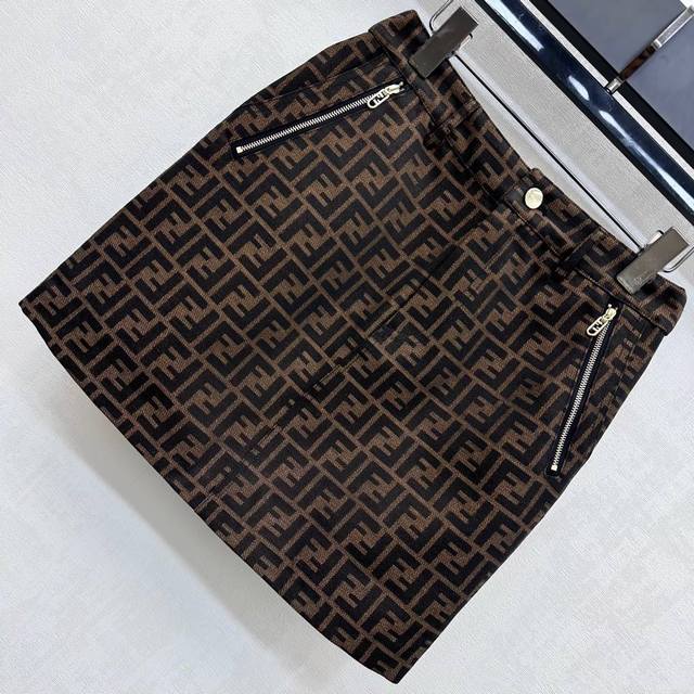 Fend*2025 New arrival Jacquard zipper skirt Customized Yb imported jacquard material with high-quality texture and appearance. The iconic double F printed jacquard elements highlight the brand tone. The zipper buttoned version is matched with the symmetrical zipper pocket design to add layering to the shape. Surface and auxiliary materials development High-waisted straight skirt tailoring can be matched with the same series of vests. The details echo up and down to perfectly interpret the sense of leisure and nobility. Fashionable and stylish. The best choice for daily wear. Series development