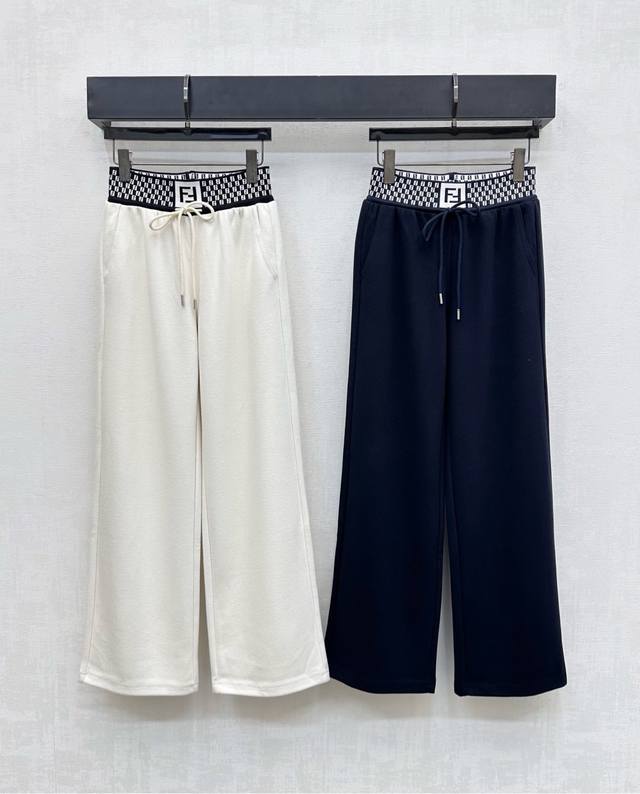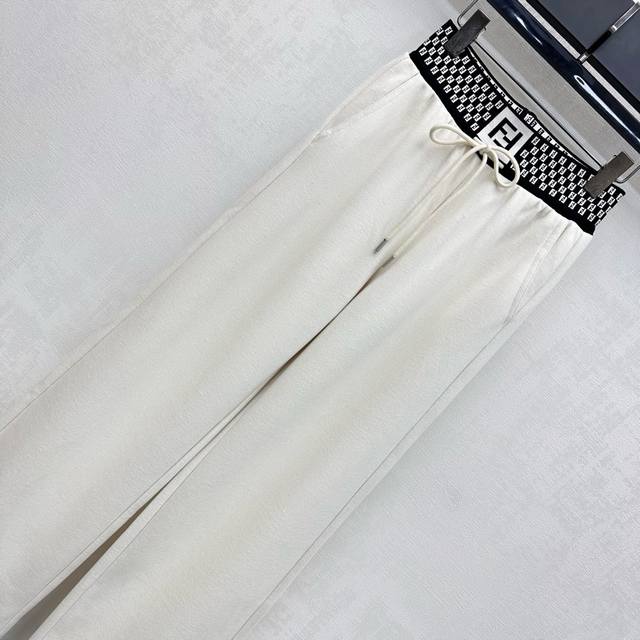 Fend*2025 New Arrival: Wide-Leg Webbing Pants. Custom-made from imported YB cotton and nylon. Sleek, comfortable, and stylish. Elastic waistband. Black and white checkered webbing with adjustable drawstrings for added dimension. Centered with a signature logo, highlighting the brand's signature design. High-waisted, wide-leg drawstring pants with a sculpted design that flatters the leg while creating a stylish, high-street look. Perfect for commuting and dating. Available in two colors.