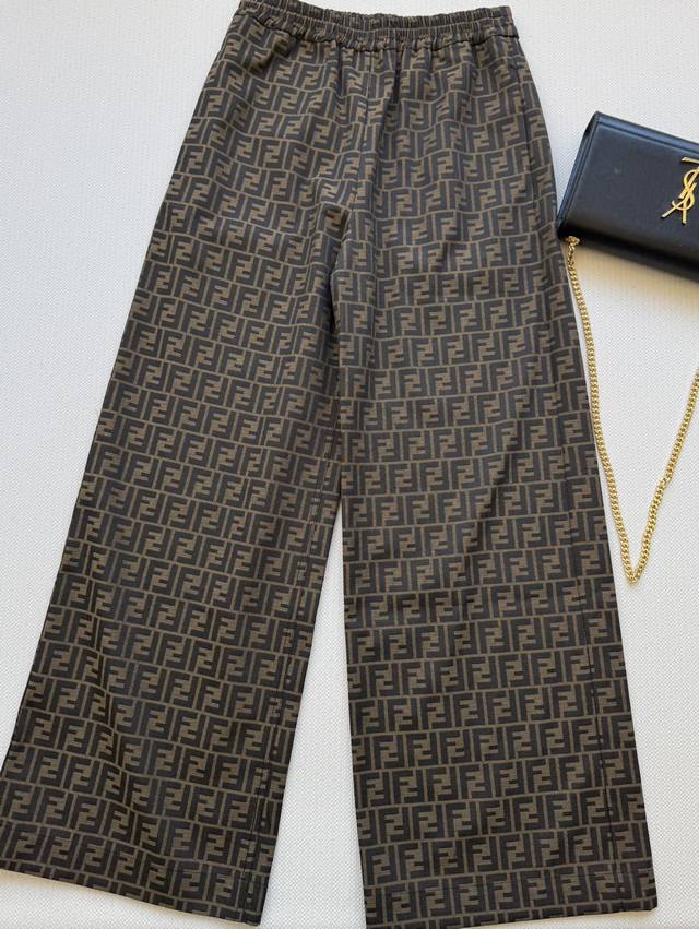 Fend*25 Early Autumn new classic monogram Ff letter jacquard trousers! Elastic waist design neat straight wide leg trousers version is versatile and not picky, the upper body is casual and handsome, retro and modern high-end color matching, fashionable interpretation of various styles with the same color clothes, a set recommended Sml