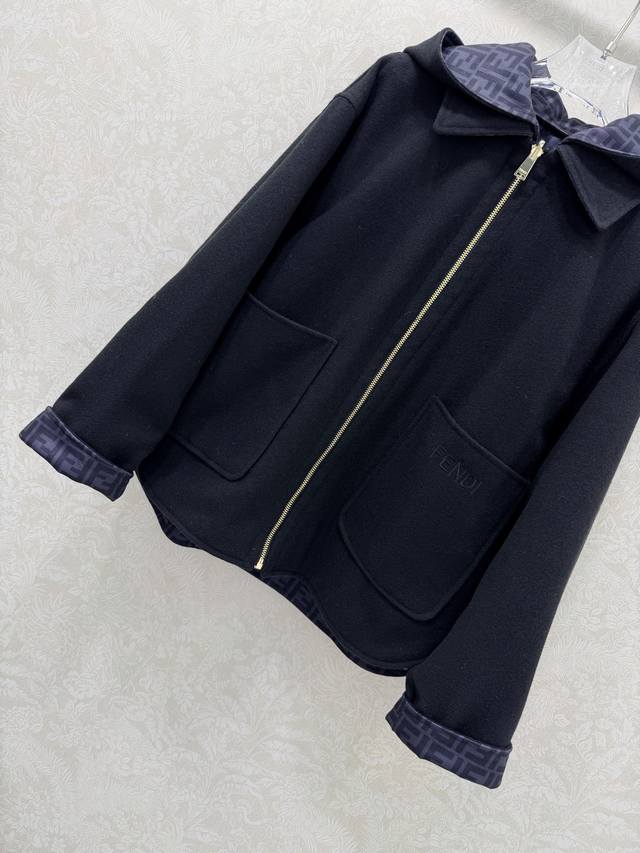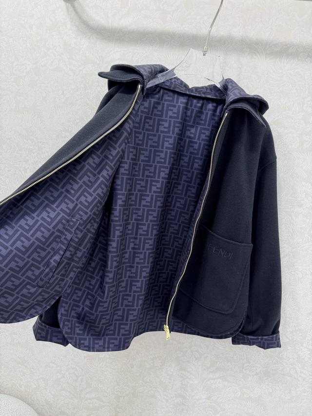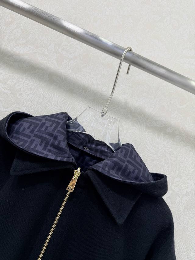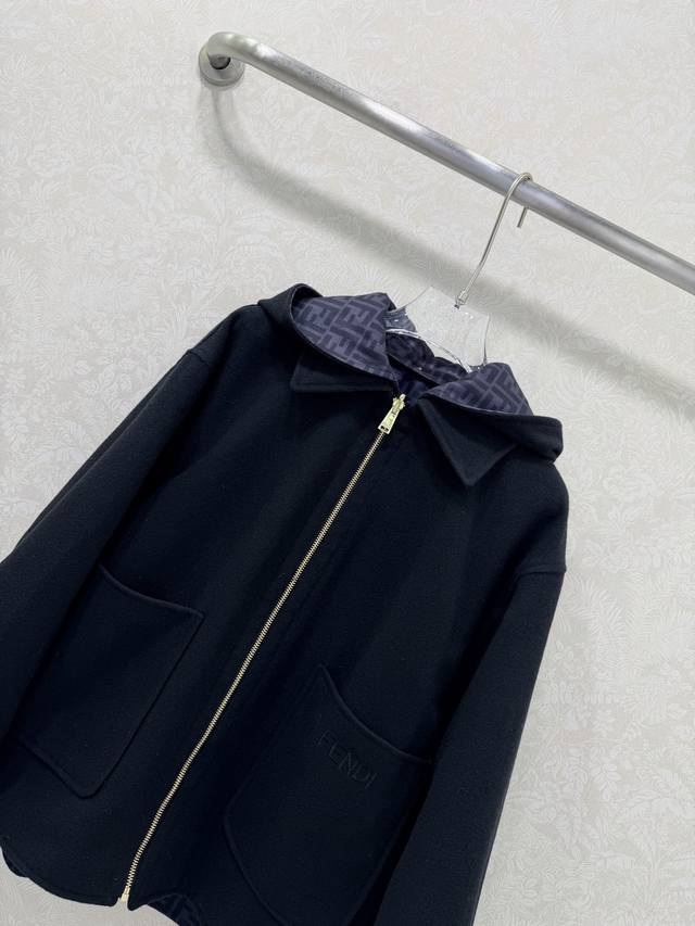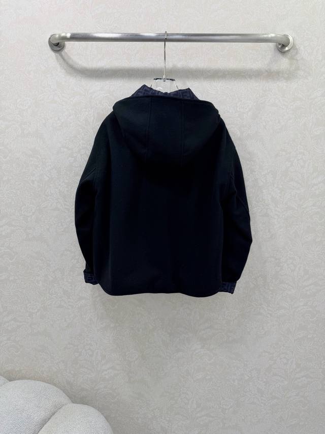 Fend*25 New Reversible Hooded Wool Coat, Original Custom Double-Sided Logo Print, Stylish and Chic. The reversible wool silhouette is both casual and comfortable. Made from 100% imported wool, it has a structured and flattering shape. Solid color pockets, letter embroidery, 3D tailored cut for a slimming effect. Clean and sophisticated, it exudes elegance and high-end style! Quality craftsmanship is evident in the details. 2 colors, 3 sizes. Smlb. DDD