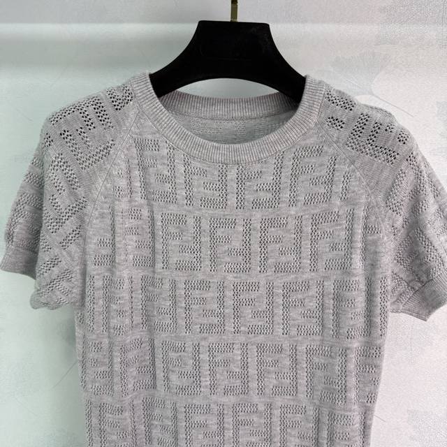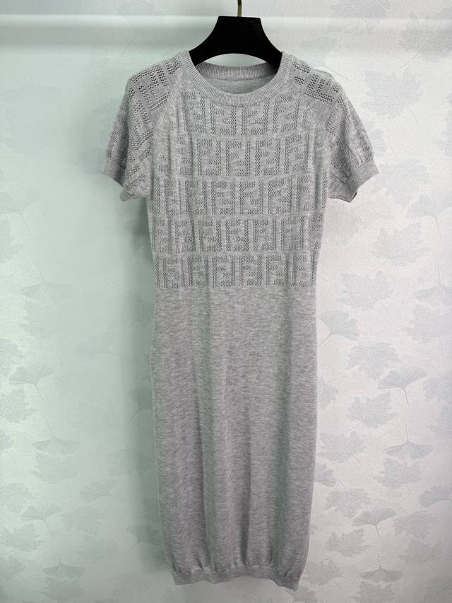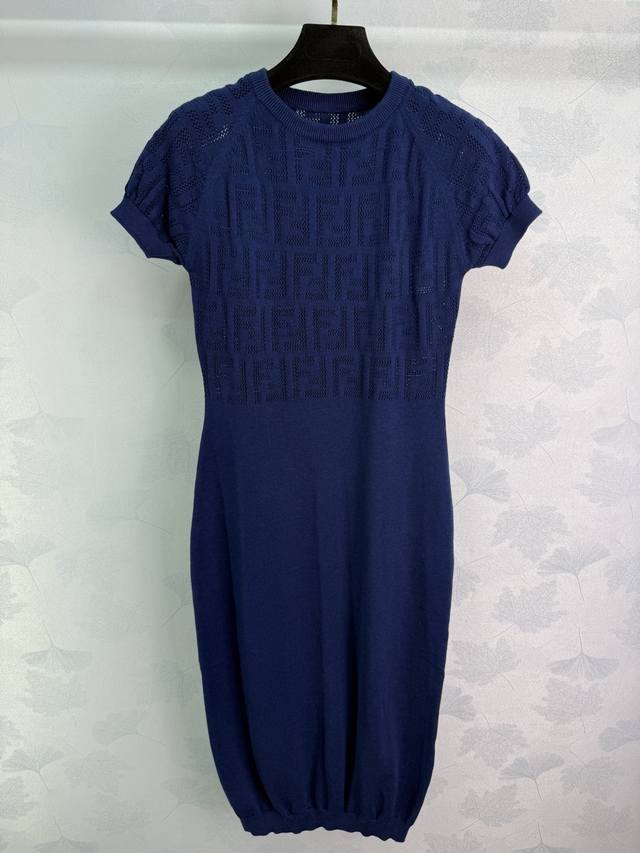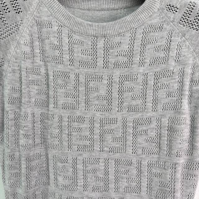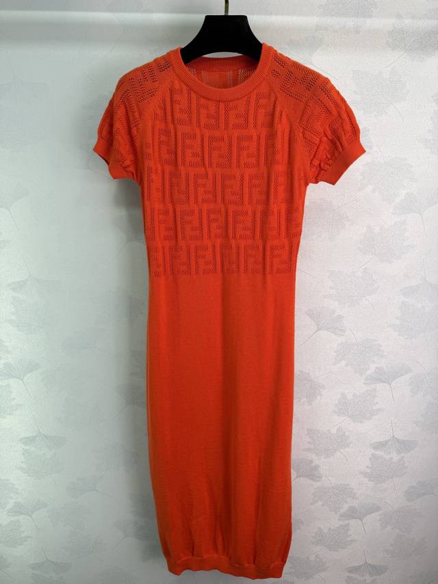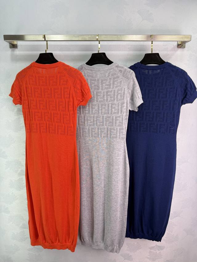Fend*Ff letter hollow knit dress, available in three colors: orange, gray, and navy. The fabric is soft and comfortable, with delicate Ff letter hollow designs on the chest and cuffs. Sml.