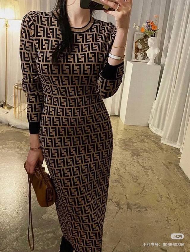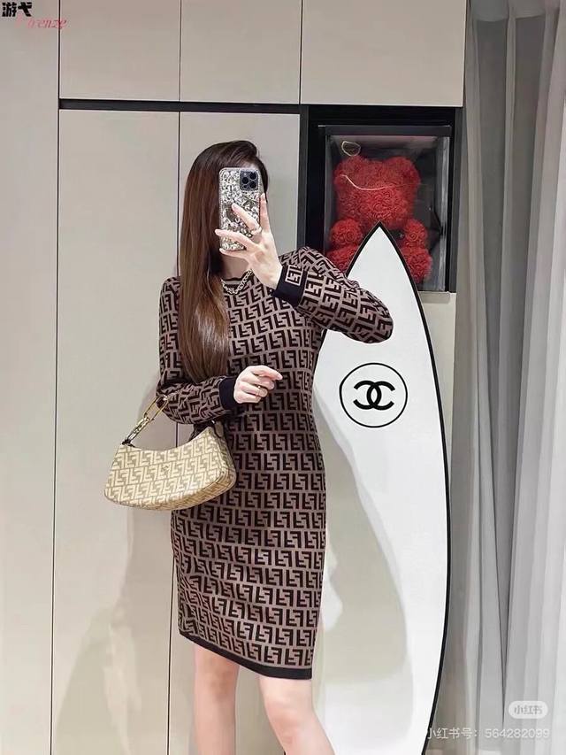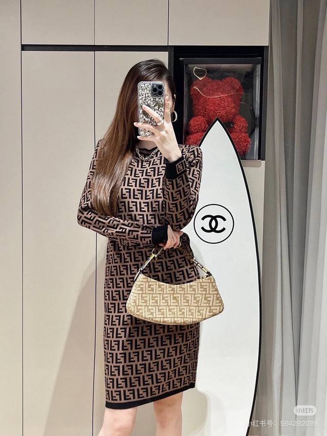 Fendi dress | 25 early autumn new round neck classic double F monogram logo jac
