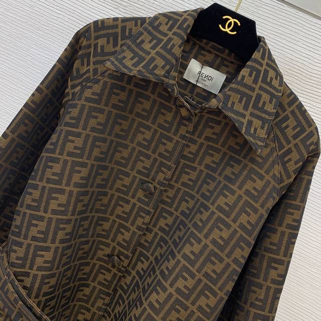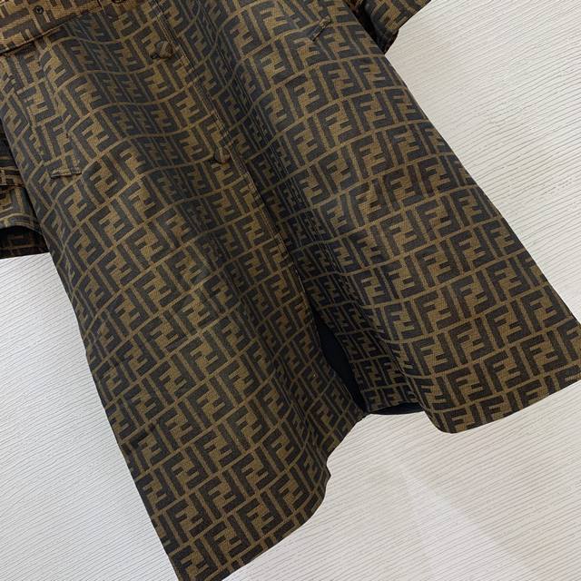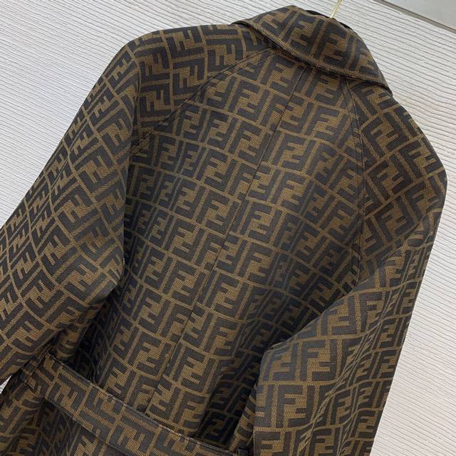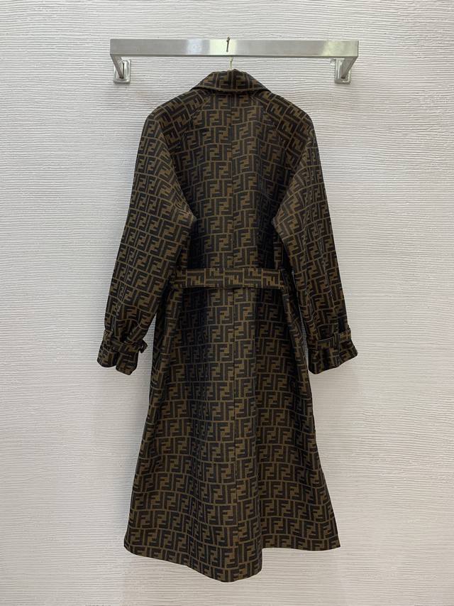 Fend's new custom double-Ff jacquard fabric has a crisp, stylish fit! Single-breasted with a slit design on both sides, this stylish mid-length trench coat features a lapel and a stylish silhouette! Size M: Chest 122cm, Raglan Sleeves 72cm, Length 108cm