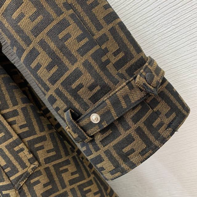 Fend's new custom double-Ff jacquard fabric has a crisp, stylish fit! Single-bre