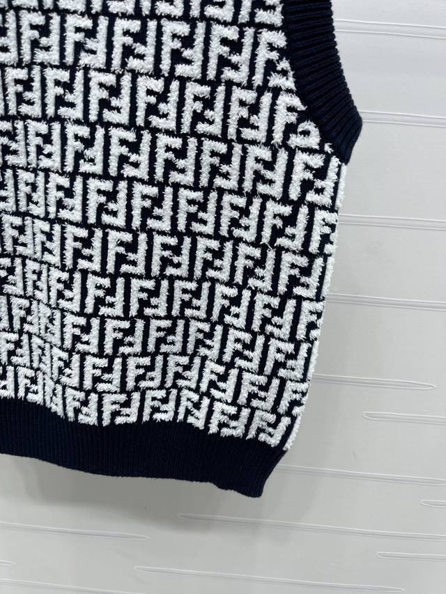 New Arrival! High-end Original Quality Fend* 2025 Autumn/Winter Latest Collection! Double F Knitted Vest! Custom wool knitted material with a high-quality feel and noticeable pile. The vest is tailored with a full-body double F jacquard print, showcasing a luxurious brand style. Elastic knitted ribbed trim on the neckline, cuffs, and hem makes it easy to put on and take off, meeting various needs for casual wear, everyday life, and dates. A top choice for fashionable trendsetters! 3 colors! Sizes SM-L3! High-quality bulk goods A706B290C DDD
