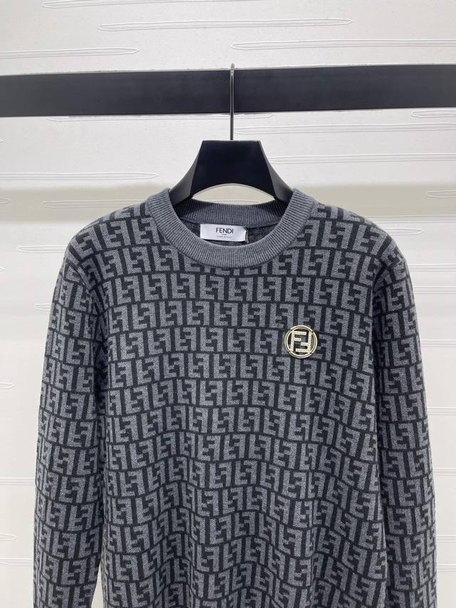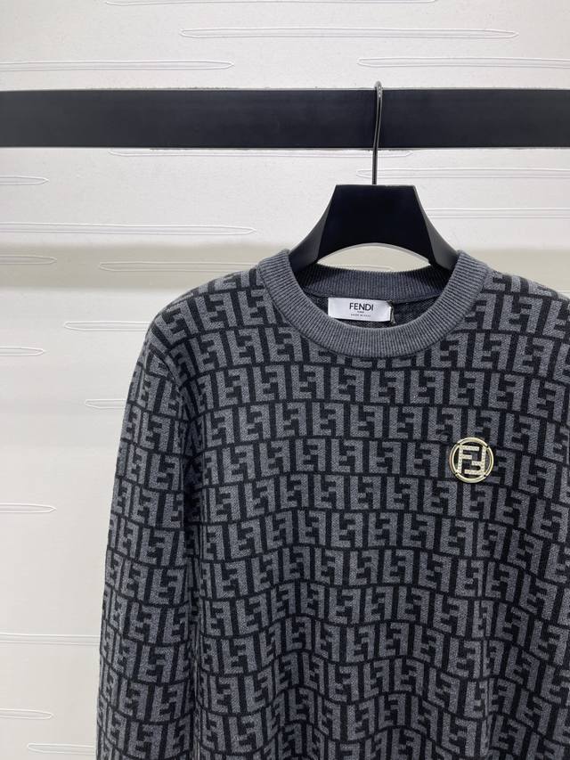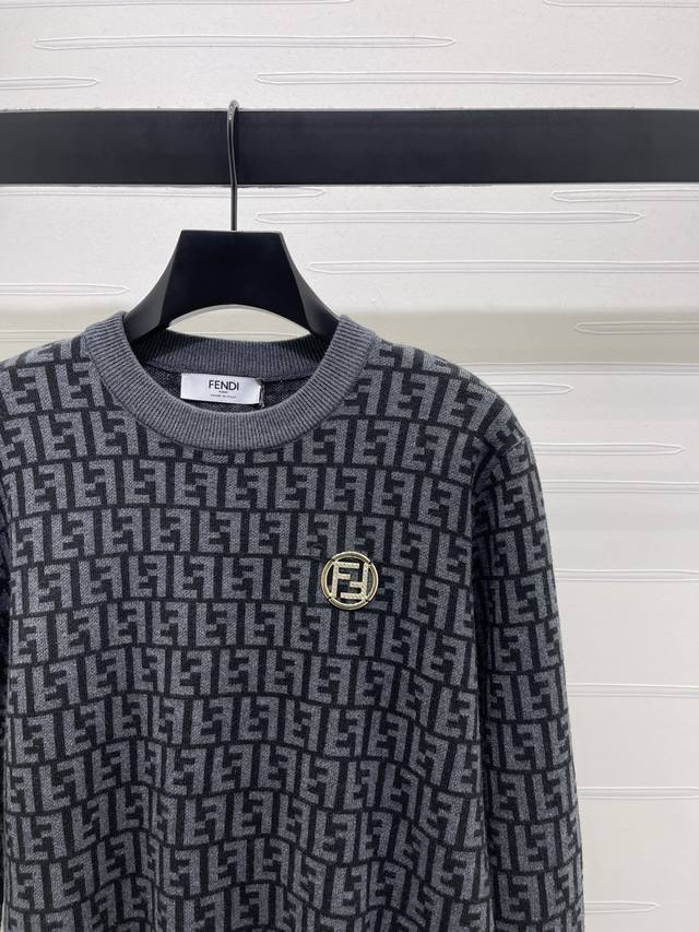 New Arrival! High-Quality Original Fend* 2025 Autumn/Winter Collection! Letter Jacquard Pullover Long-Sleeve Sweater! Custom wool yarn, high-quality breathable round neck long-sleeve sweater. The entire sweater features a fine crochet texture to outline the letter jacquard pattern. A rhinestone brooch on one side complements the design, highlighting the sophistication of the outfit. The neckline and hem are finished with elastic ribbed trim to maintain a unified look. The overall style is sophisticated and casual, highlighting a light luxury and fashionable temperament. The slim fit is flattering and suitable for retro and fashionable goddess looks! 1 color! Sizes SM-L3! High-quality bulk order A706B370C DDD