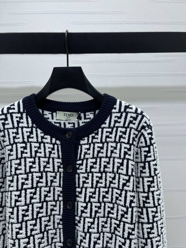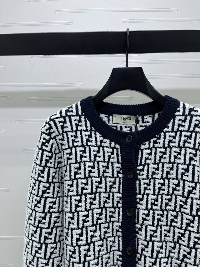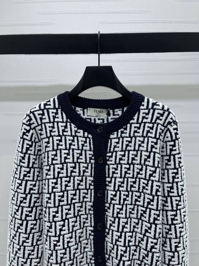 New Arrival! High-Quality Original Fend* 2025 Early Autumn Collection! Crew Neck Long-Sleeve Cardigan! Custom imported mohair material, high-quality texture, noticeable pile. Crew neck long-sleeve cardigan with all-over double F jacquard print, solid color contrast at the collar, cuffs, and hem, showcasing a luxurious brand style. Elastic knit ribbed trim makes it easy to put on and take off, meeting various needs for casual wear, daily life, and dates. A top choice for fashionable trendsetters! 3 colors! Sizes SM-L3! High-quality bulk order.