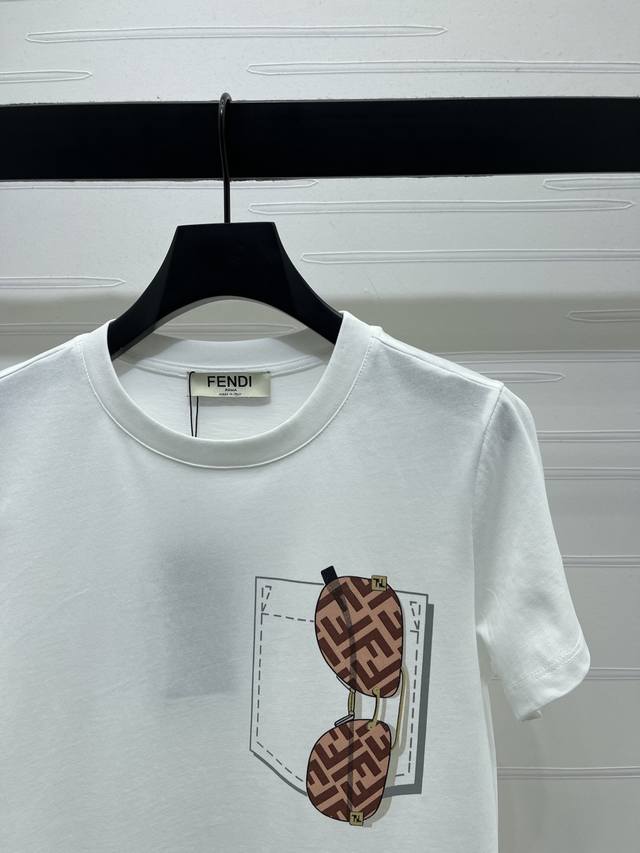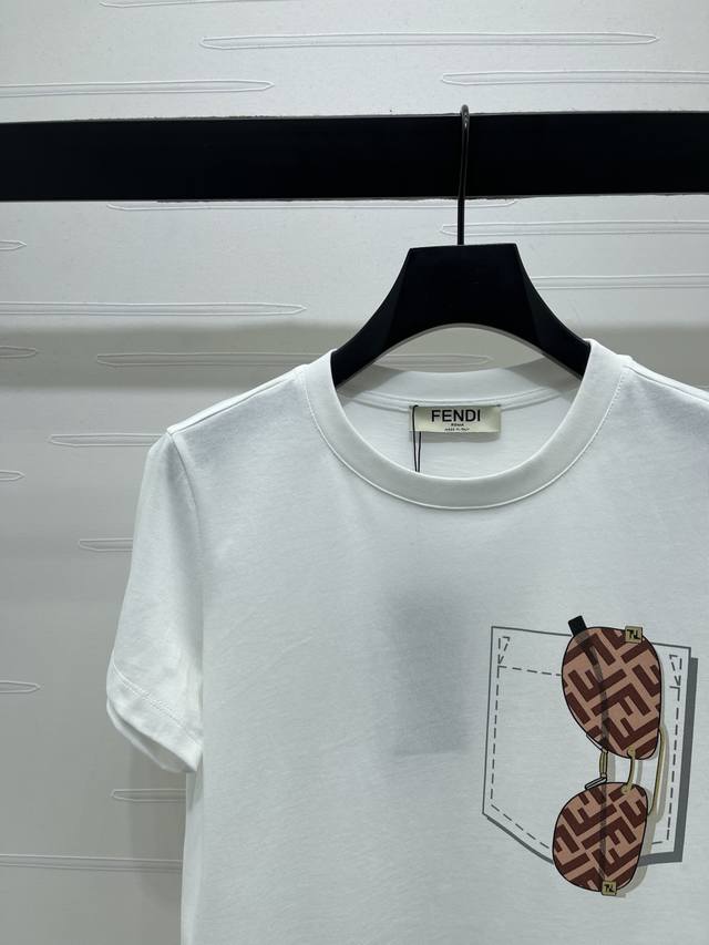 New Arrival! High-Quality Original Fend* 2026 Early Spring Collection! Color-blocked Pocket Crew Neck Short-Sleeve T-Shirt! Custom-made virgin cotton, breathable and comfortable with a premium feel. The loose T-shirt cut highlights the brand's style. Made of high-quality pure cotton with a slight stretch for a slimming effect. The chest pocket features a 3D double-F pattern reminiscent of glasses, showcasing a sophisticated style. Perfect for wearing alone or layering! 1 color! Sizes SM-L3! High-quality bulk order.