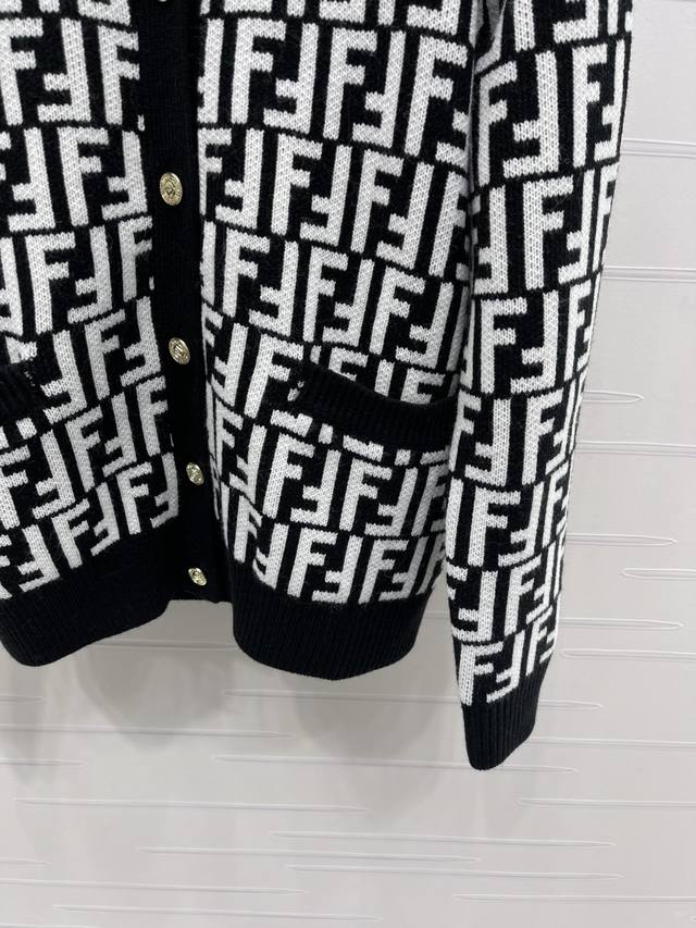 New Arrival! High-Quality Original Fend* 2026 Early Spring Collection! Double Pocket Jacquard V-Neck Knit Cardigan! Crafted from custom wool blend yarn, it boasts a luxurious feel, is incredibly soft and comfortable. The V-neck design features custom-engraved buttons and an all-over double-F logo pattern, showcasing the brand's signature style. The relaxed fit is flattering on all body types, making it a simple and versatile everyday piece for autumn and winter! Available in 2 colors! Sizes SM-L3! High-quality bulk order A706B350C DDD