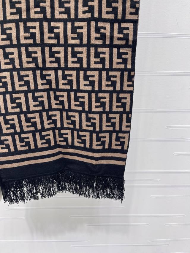 New Arrival! Original High-Quality Fend* 2026 Early Spring Collection! Jacquard Knitted Tassel Scarf! Crafted from custom Yb cashmere and wool yarn, it boasts a high-end texture, is incredibly soft and comfortable, and features densely knitted tassel details for a relaxed yet luxurious feel. It offers superior warmth and wind protection. The entire scarf is covered in the classic double-F jacquard pattern, with the ends echoing the complete letter logo, exuding a vintage feel and showcasing the brand's premium quality. Perfect for everyday wear in autumn and winter, simple, versatile, and stylish! 1 color! Sizes SM-L3! High-quality bulk order A706B270C DDD